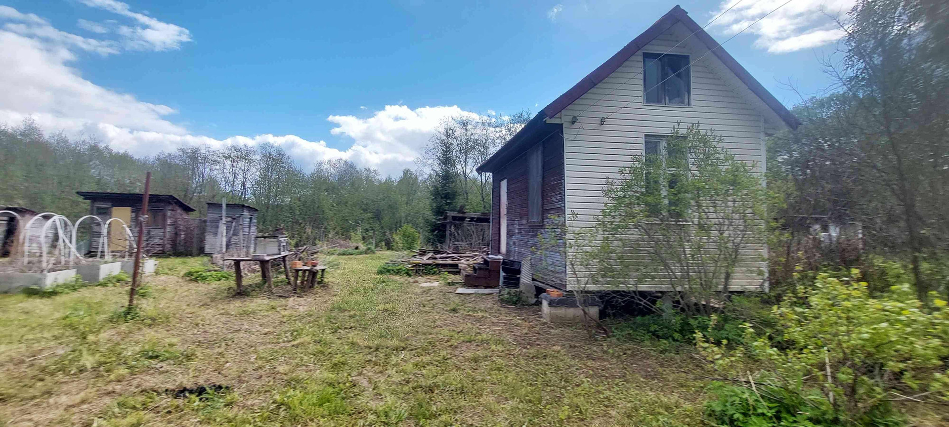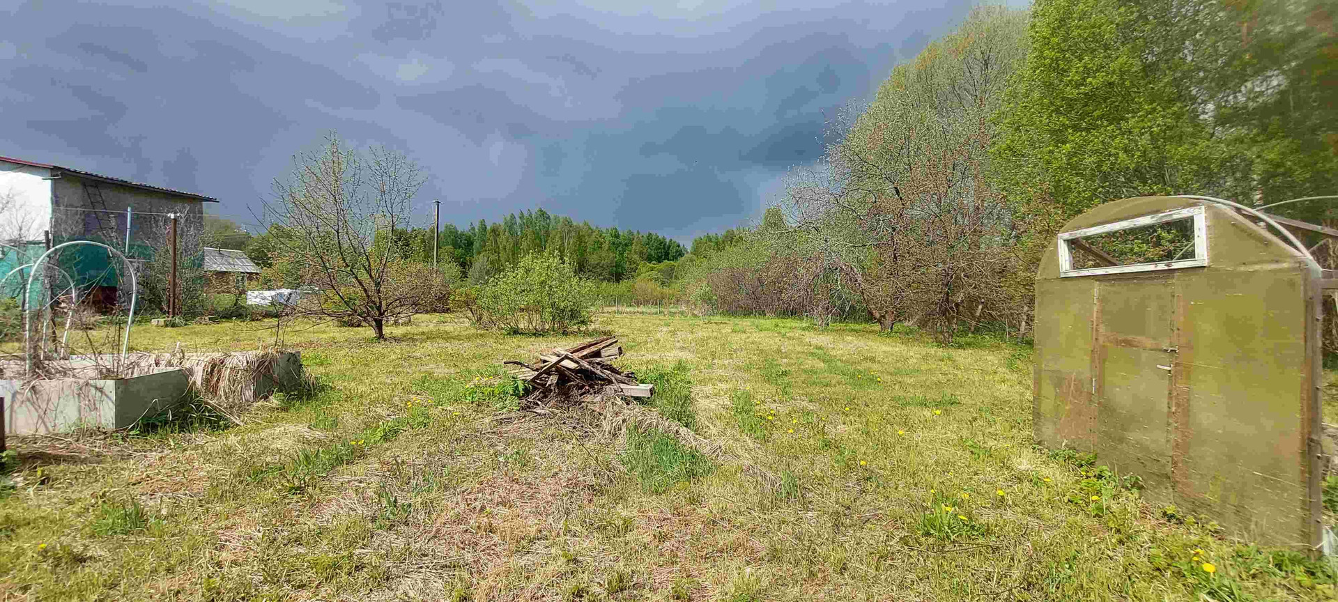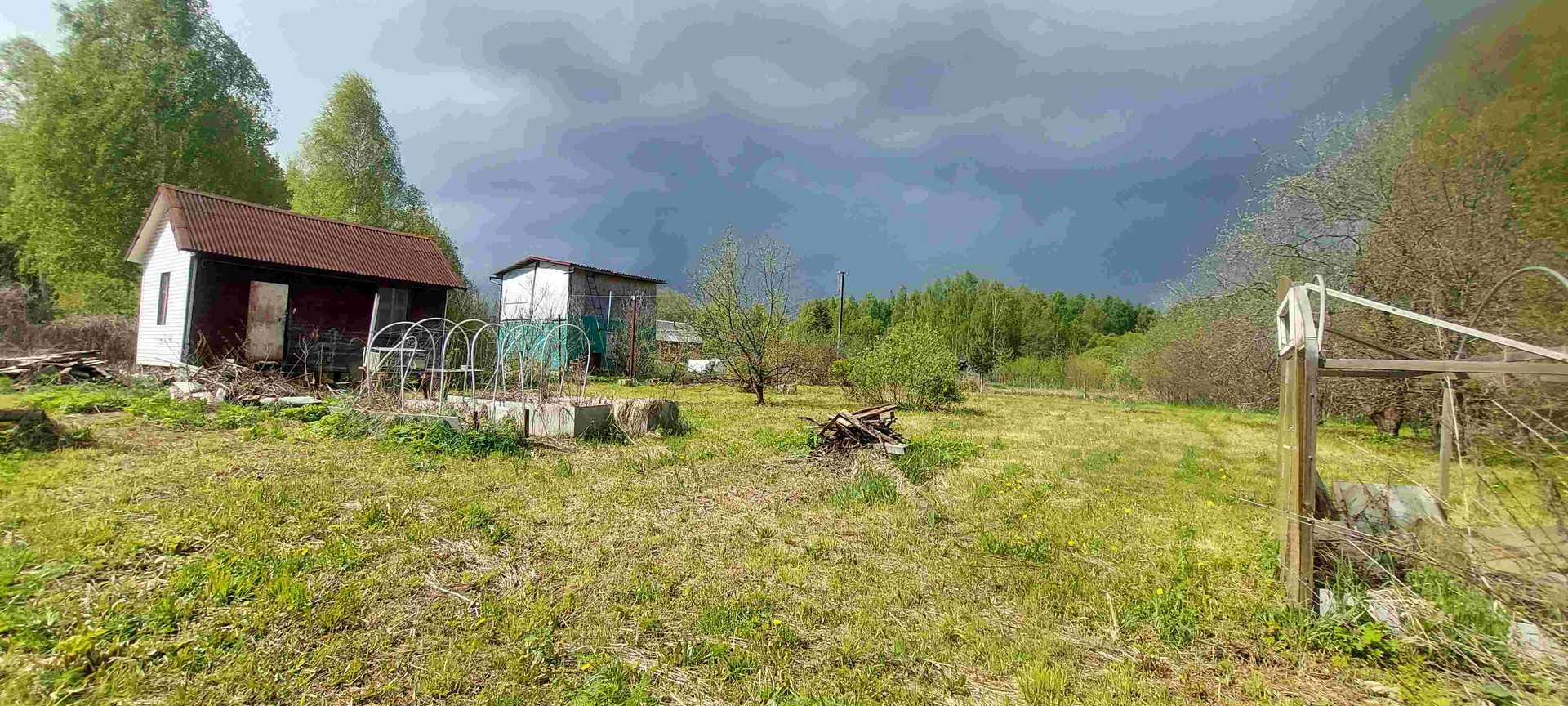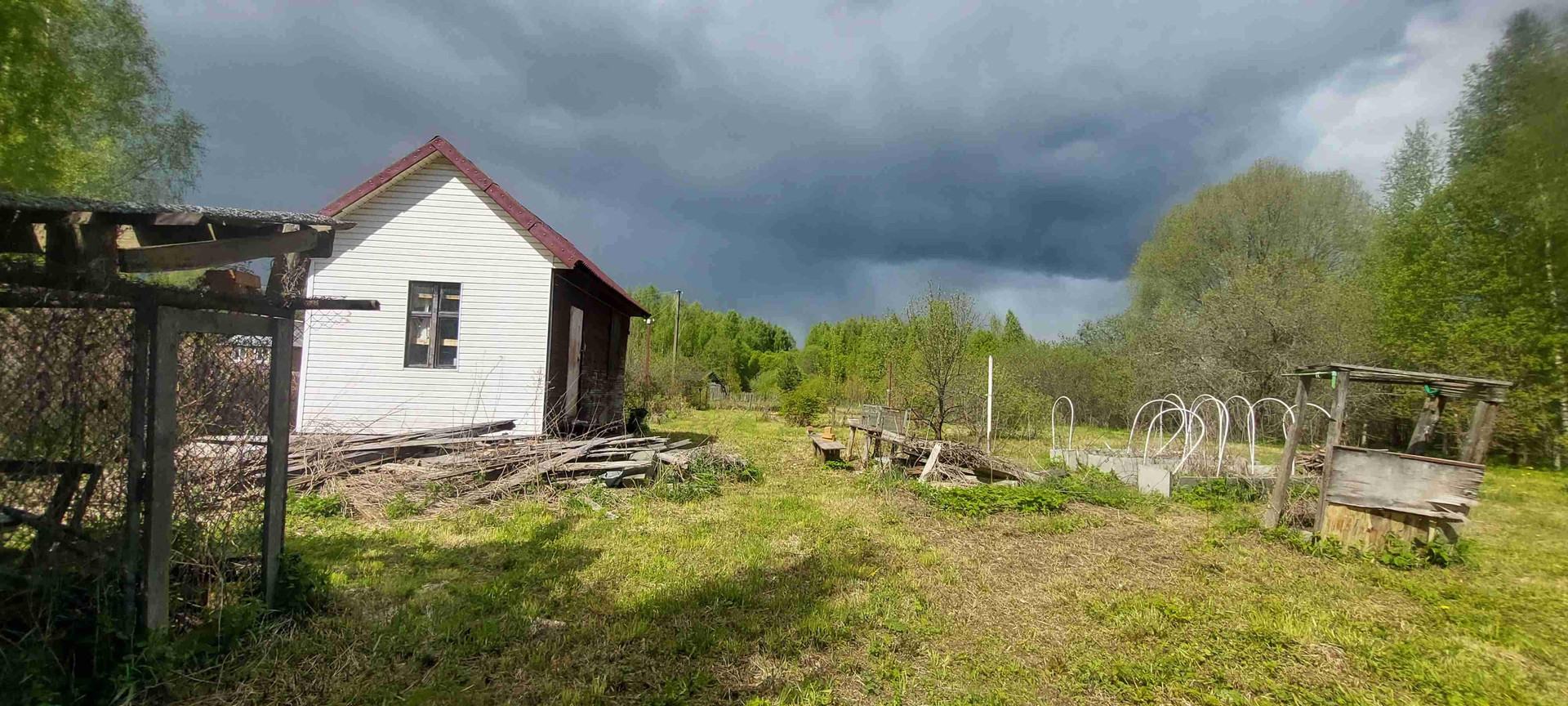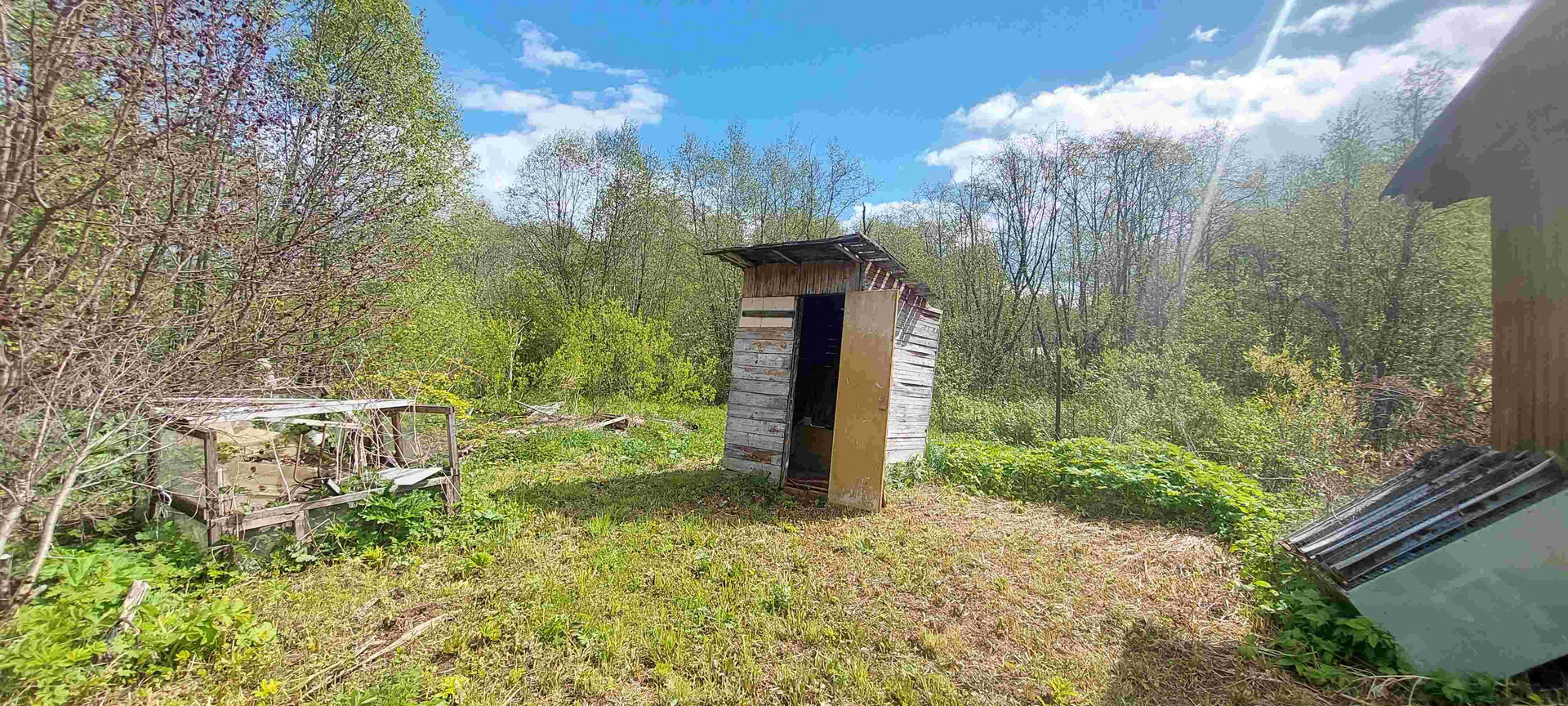 Туалет, сарай, забор.