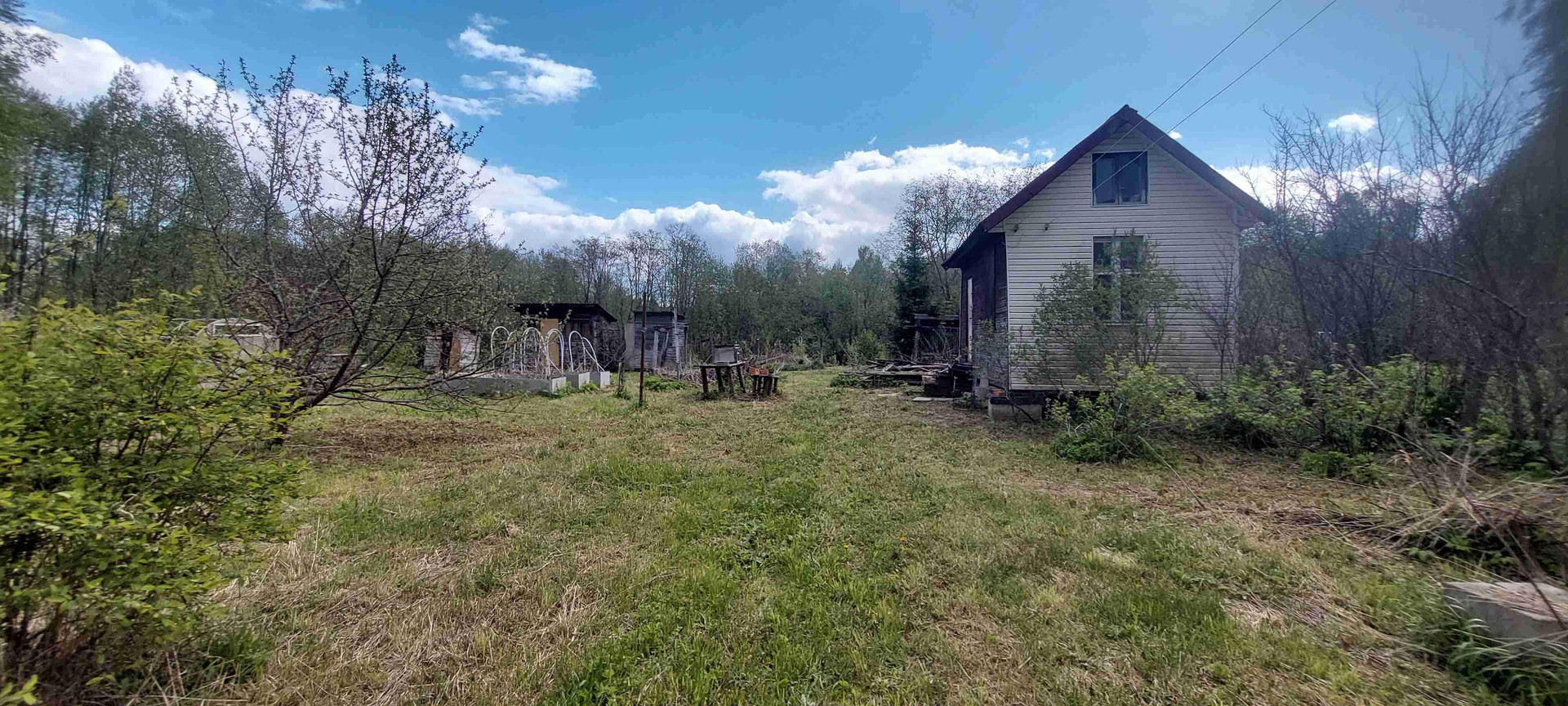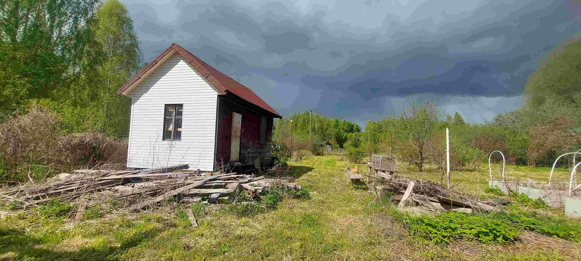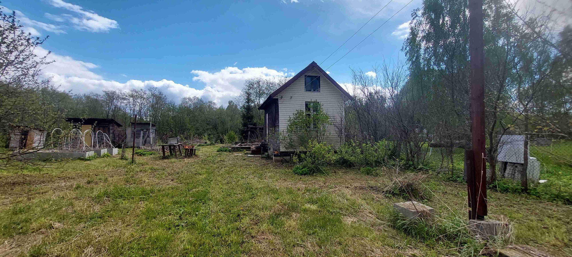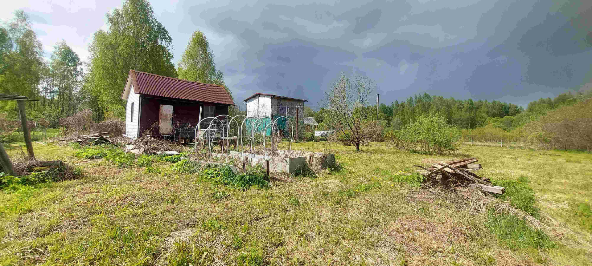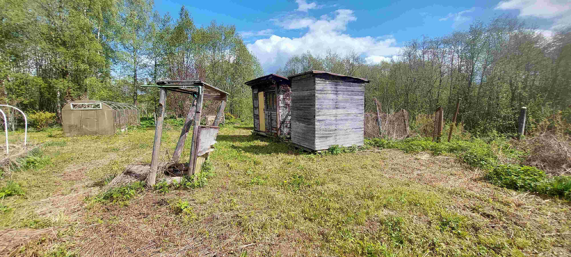 Туалет, сарай, забор.