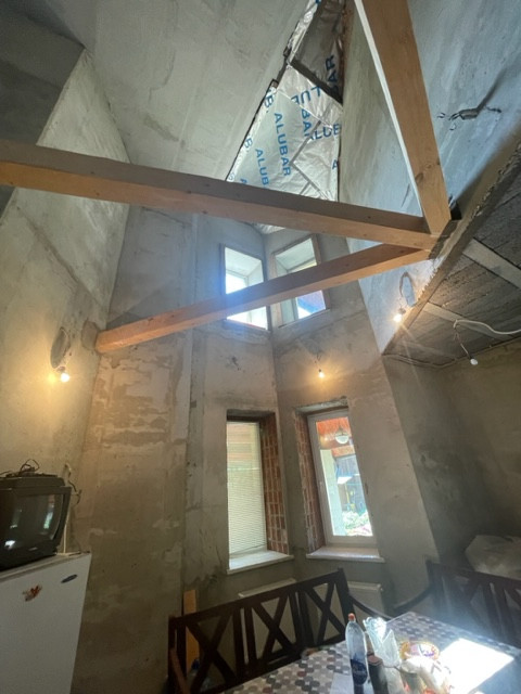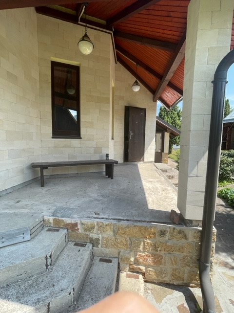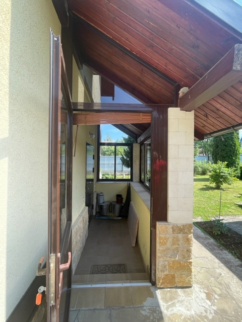 Фундамент дома заложен в виде ленточной конструкции с усиленной арматурой. Во внешней отделке использовались натуральный камень для фундамента и известняк для входной группы. Внешние стены дома оштукатурены. Окна оборудованы антивандальными стеклопакетами. При строительстве использовались только качественные материалы: в доме хорошая теплоизоляция и комфортно в любой сезон и погоду.