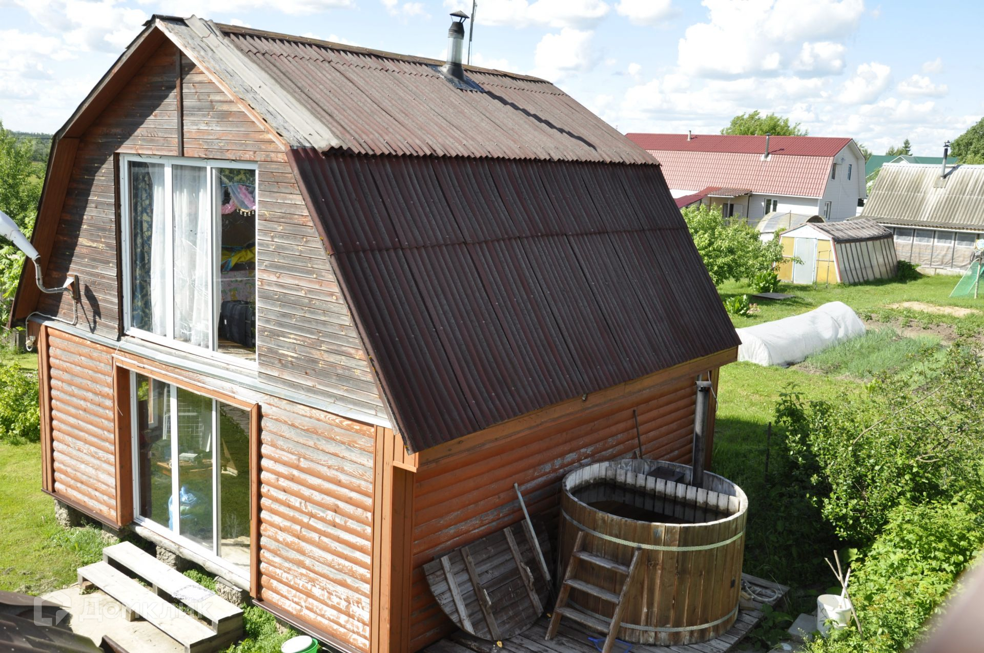 Для полноценного загородного отдыха на участке имеется двухэтажная баня с купелью. Также есть небольшой гостевой домик, вольер для собаки и хозблок.
