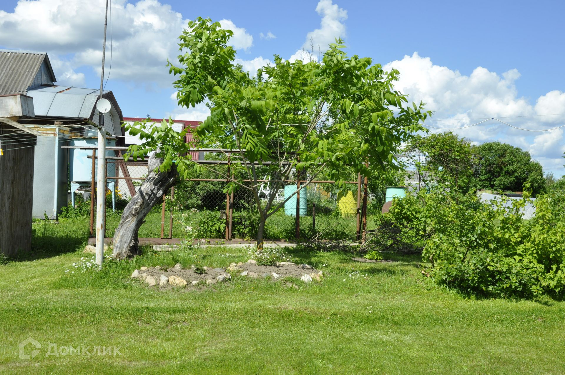 На самом участке имеются грядки со сладкой клубникой, плодовые деревья - яблони и груша и даже виноград! Под окном разбита клумба с многолетними цветами и фонтанчиком. Хозяева с любовью следят за участком круглый год.