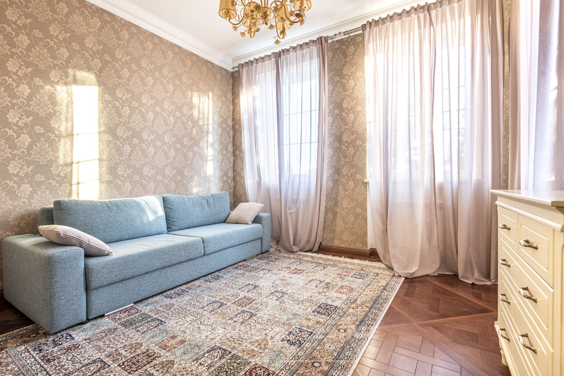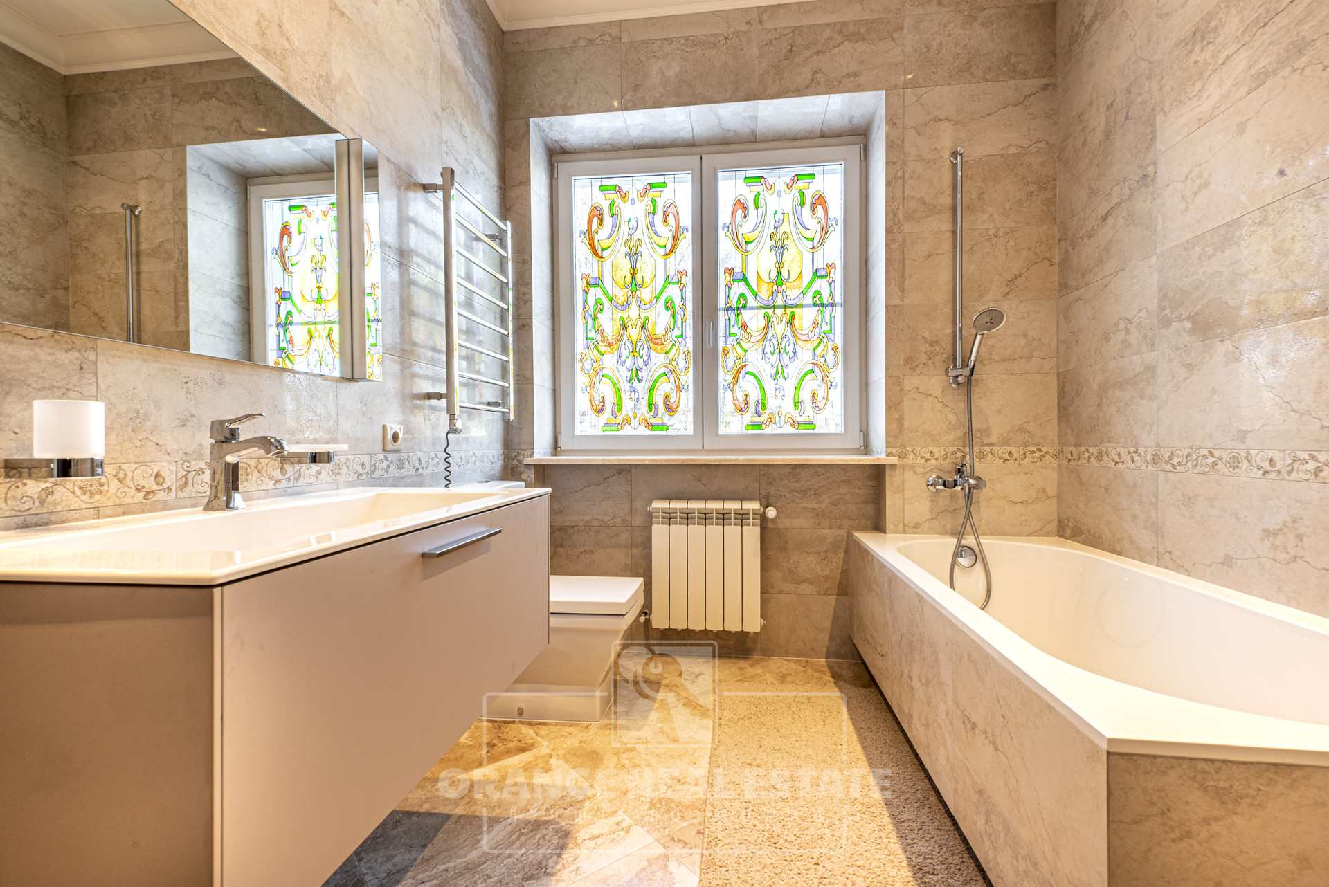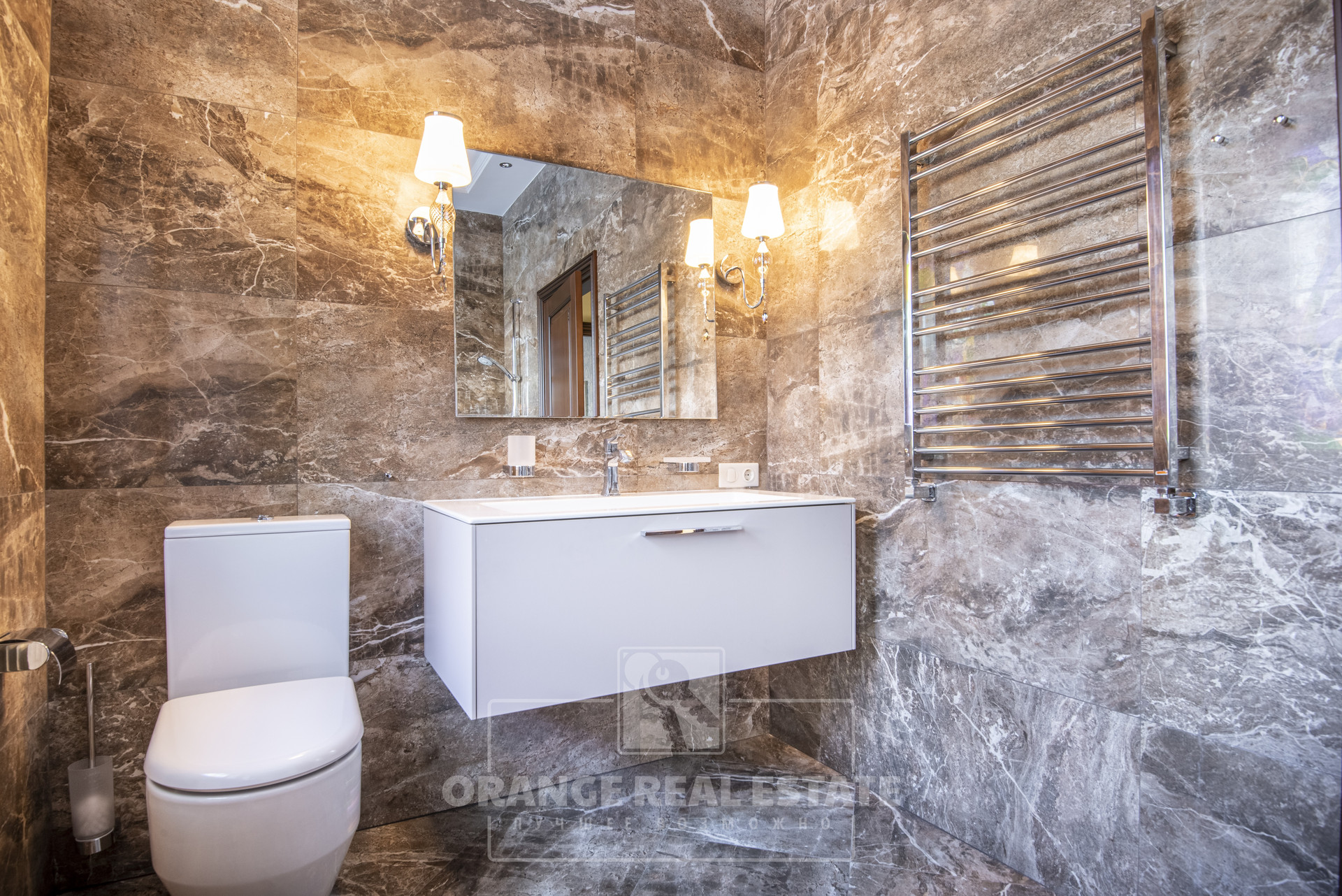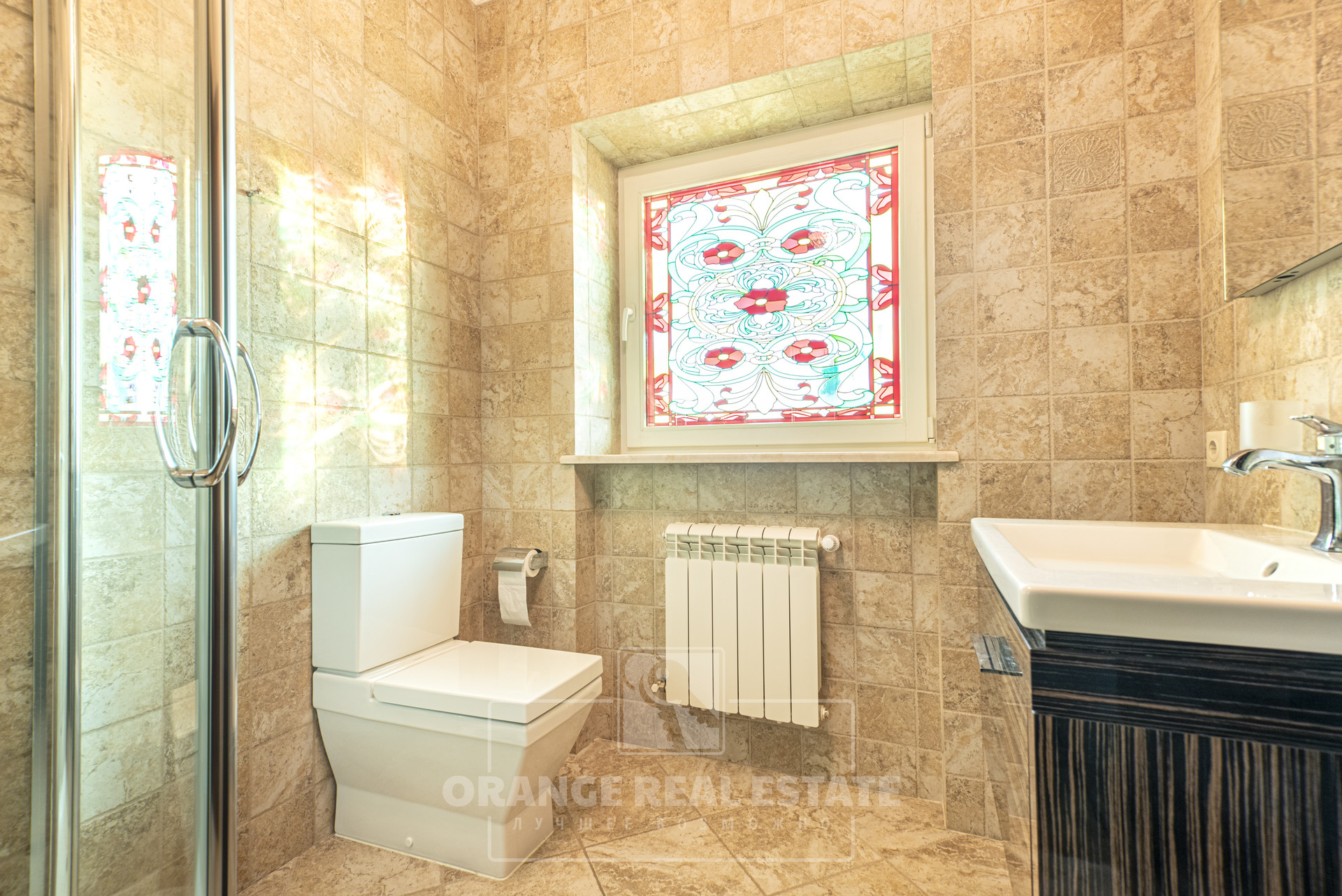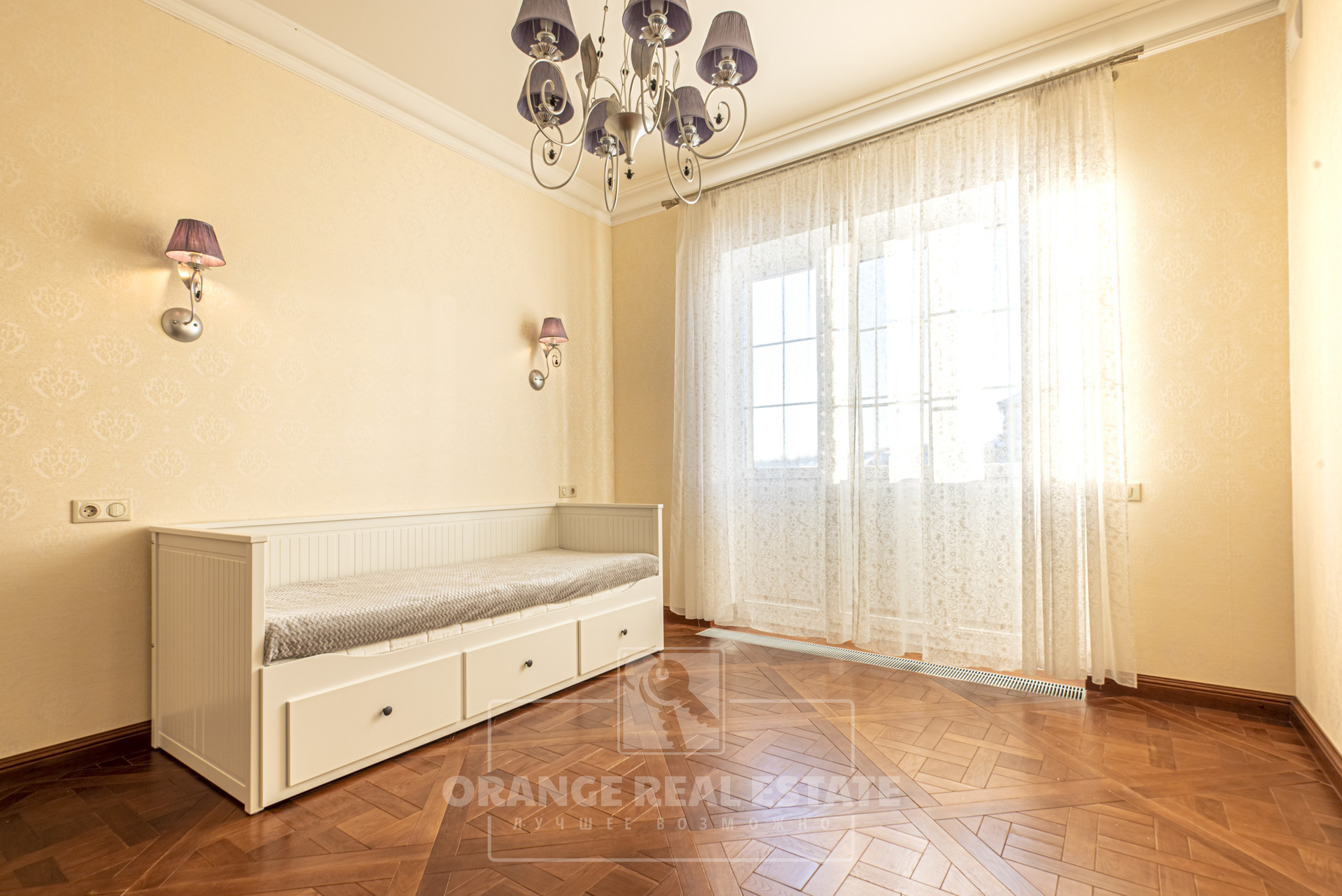 2 этаж - 3 спальни со своими гардеробными и с/у, кабинет, холл. На стенах эксклюзивные шелковые обои, венецианская штукатурка, пол - мрамор и наборный паркет. Панорамное остекление, витражи.