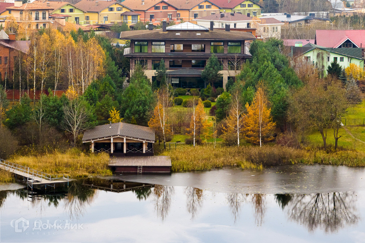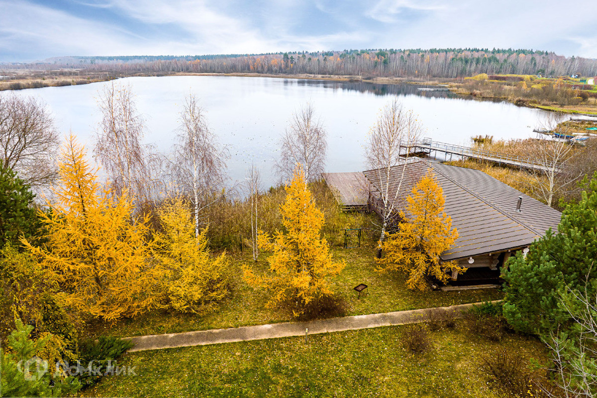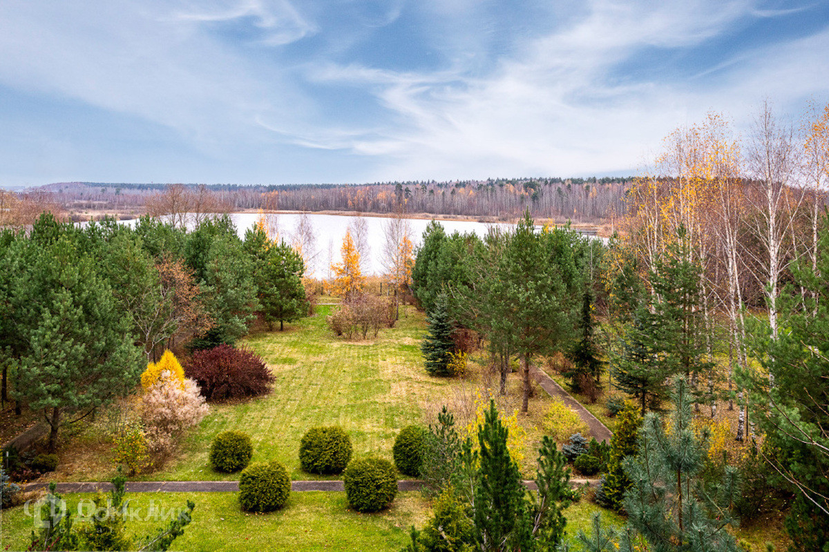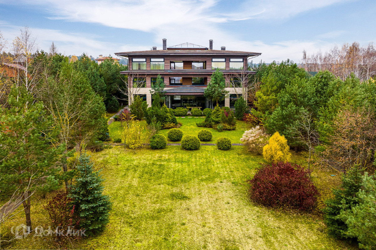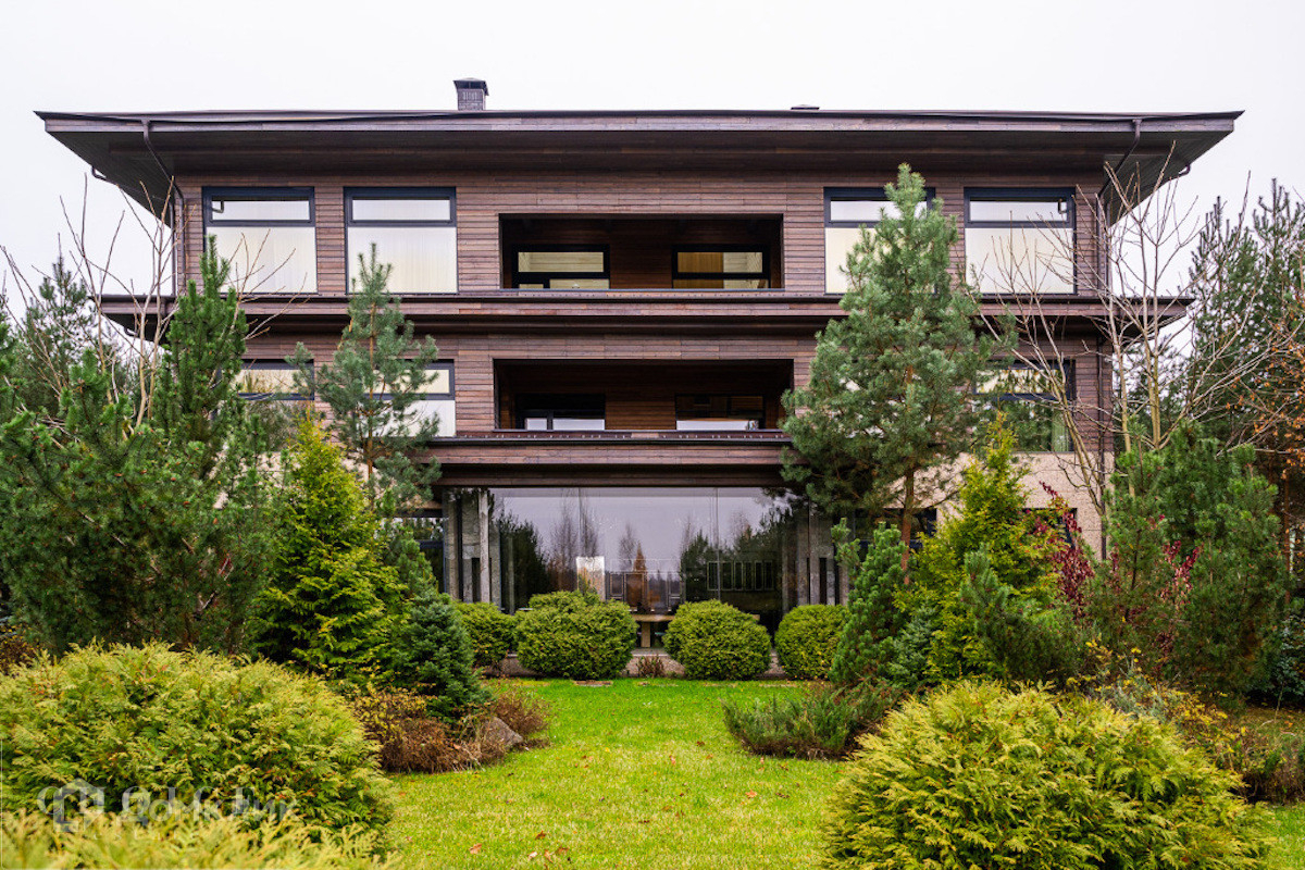 Современный дом с большими панорамными окнами, балконами необычной архитектурной формы, оригинальной по форме крышей, с канадским кедром и дорогим камнем во внешней отделке очень гармонично вписан в ландшафт участка. Внутренние интерьеры, выполненные в современном стиле поражают своим комфортом, продуманностью планировки, обилием пространства и света. Изюминкой дома несомненно является камин-очаг, множество зеркал, выполненных в едином стиле, лестница со стеклянными перилами. На участке есть отдельно стоящий гараж (329 кв .м.) с квартирой для персонала : 2 спальни, 2 кухня, 2 с/у. Выполнены все ландшафтные работы. Здесь растут раскидистые ели, молодые каштаны, липы, туи, необыкновенной красоты декоративные кустарники. Имеется собственный выход к красивому природному озеру.
