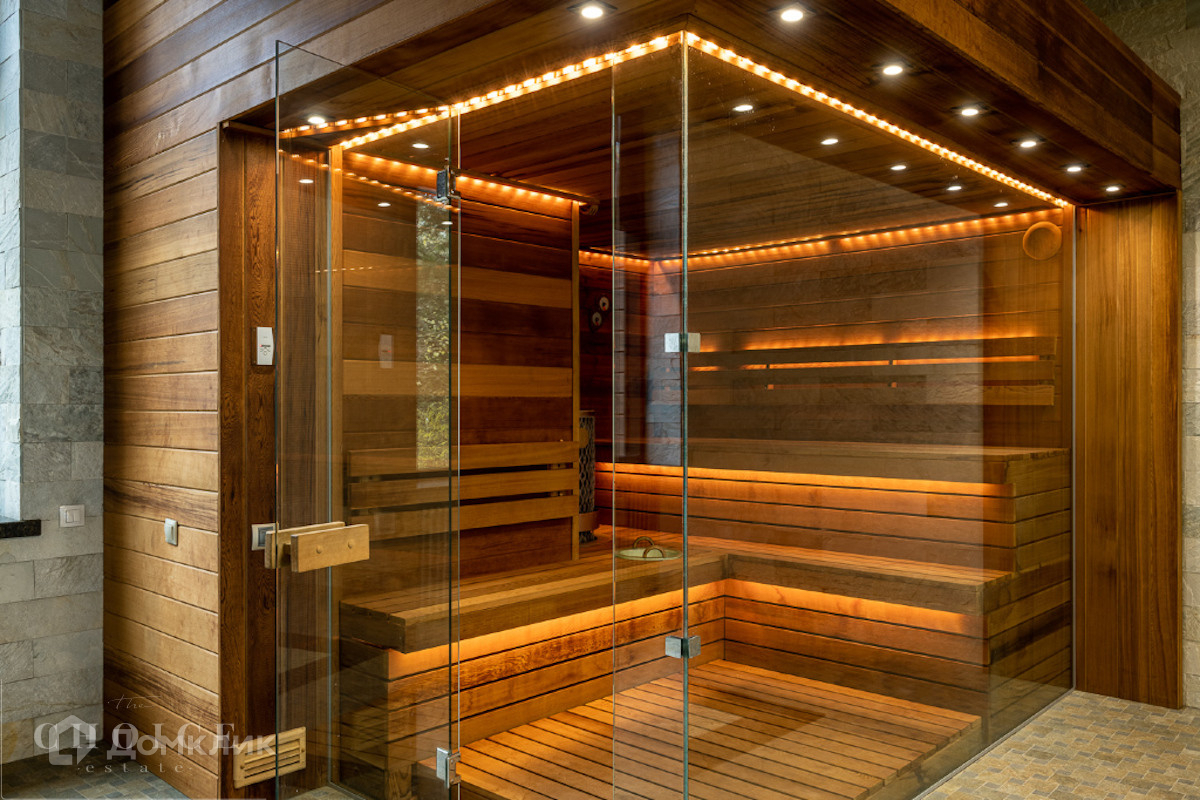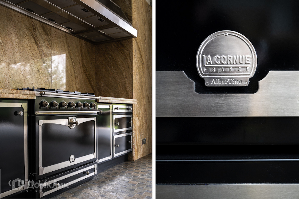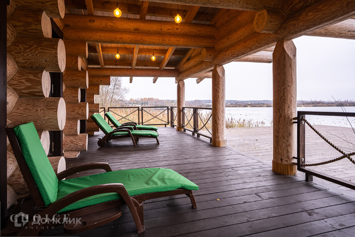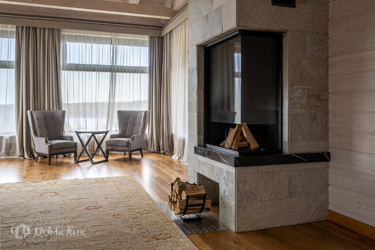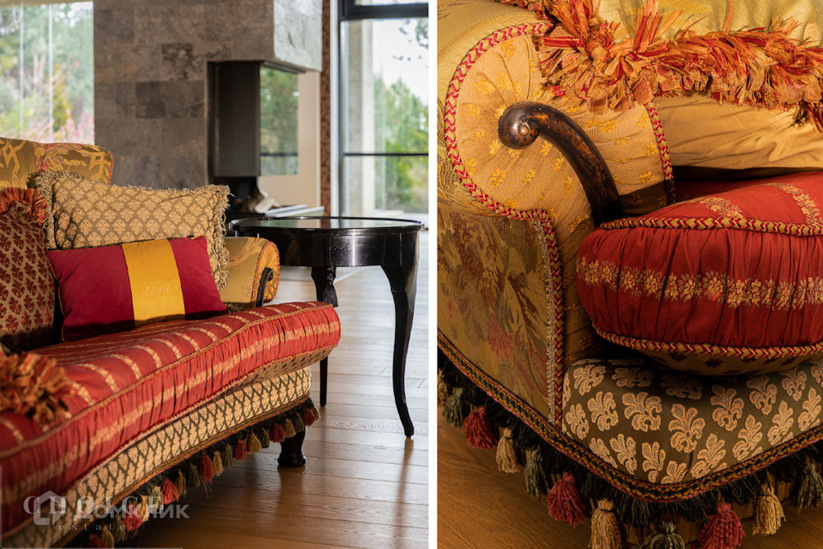 Современный дом с большими панорамными окнами, балконами необычной архитектурной формы, оригинальной по форме крышей, с канадским кедром и дорогим камнем во внешней отделке очень гармонично вписан в ландшафт участка. Внутренние интерьеры, выполненные в современном стиле поражают своим комфортом, продуманностью планировки, обилием пространства и света. Изюминкой дома несомненно является камин-очаг, множество зеркал, выполненных в едином стиле, лестница со стеклянными перилами. На участке есть отдельно стоящий гараж (329 кв .м.) с квартирой для персонала : 2 спальни, 2 кухня, 2 с/у. Выполнены все ландшафтные работы. Здесь растут раскидистые ели, молодые каштаны, липы, туи, необыкновенной красоты декоративные кустарники. Имеется собственный выход к красивому природному озеру.