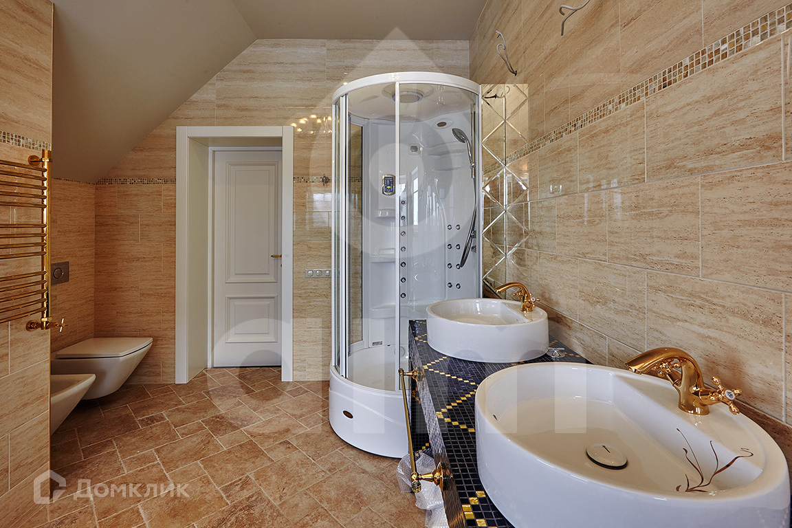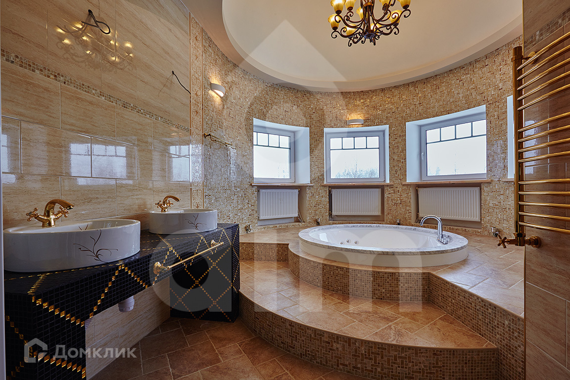 Гостевой дом 300 м2 (кирпич, брус, пеноблок, блок-хаус, год постройки 2008) с отделкой и мебелью: 4 спальни, кухня, 3 санузла, гостиная, чилл-аут, гардеробная, панорамная комната с круглой гидромассажной ванной на 3-м этаже, 2 гаража, оружейная комната/склад.