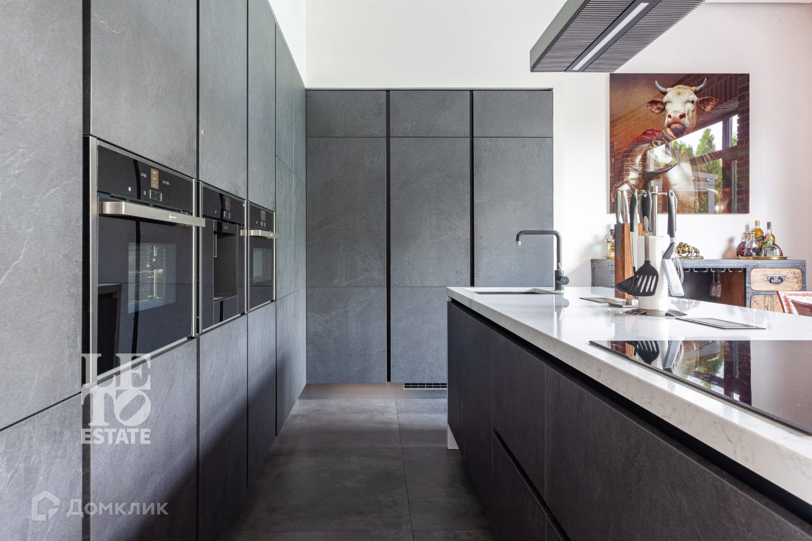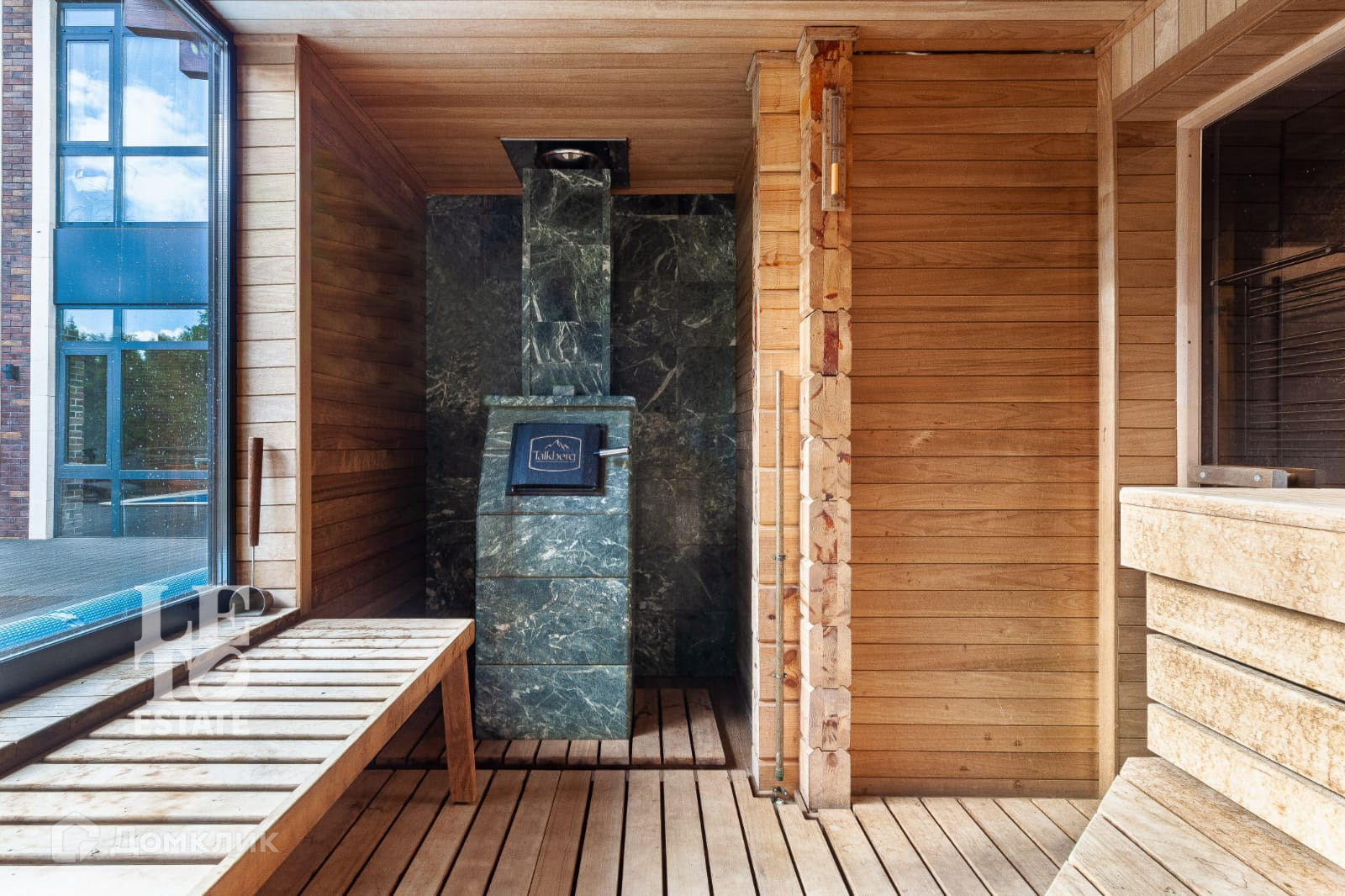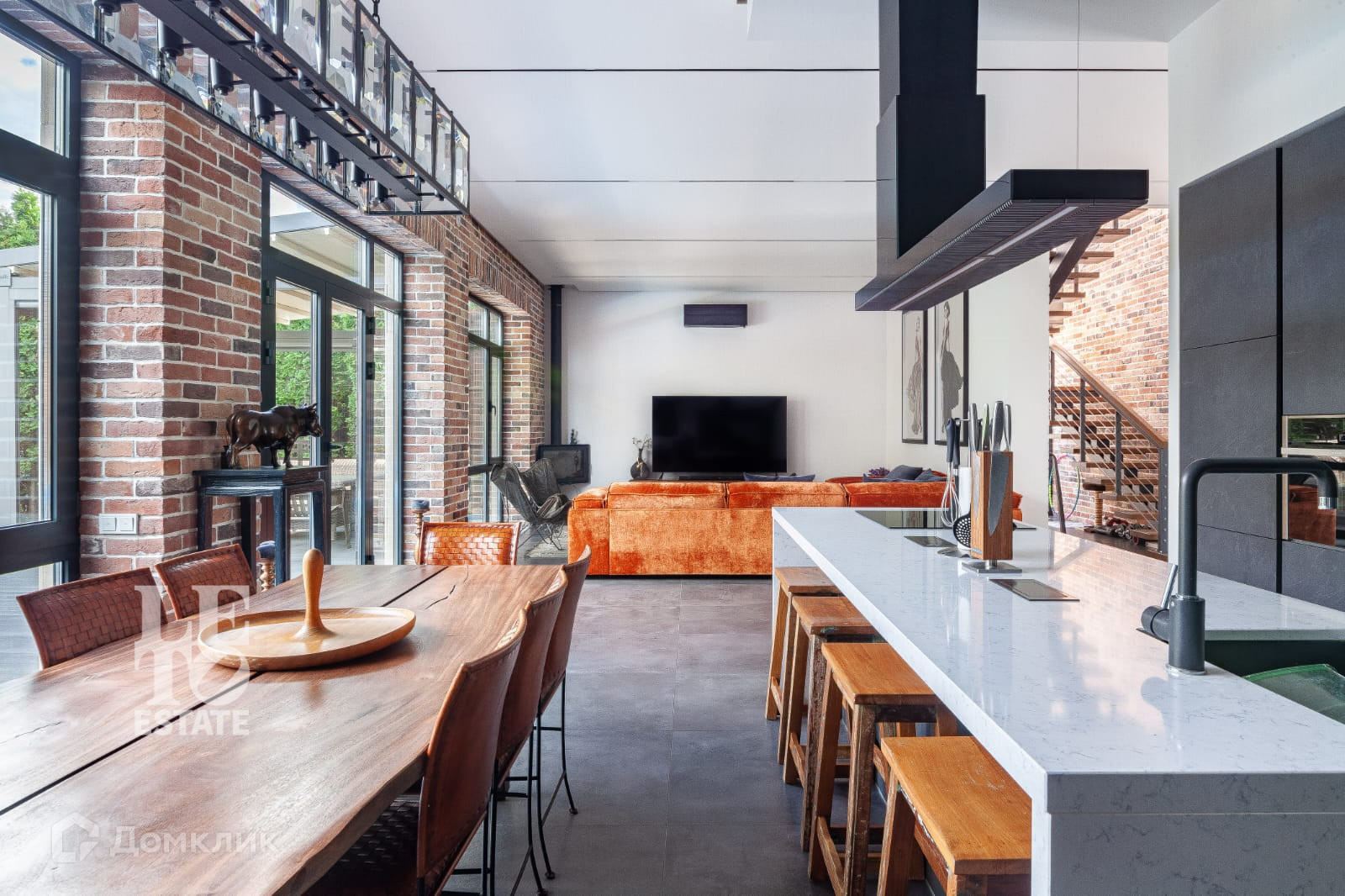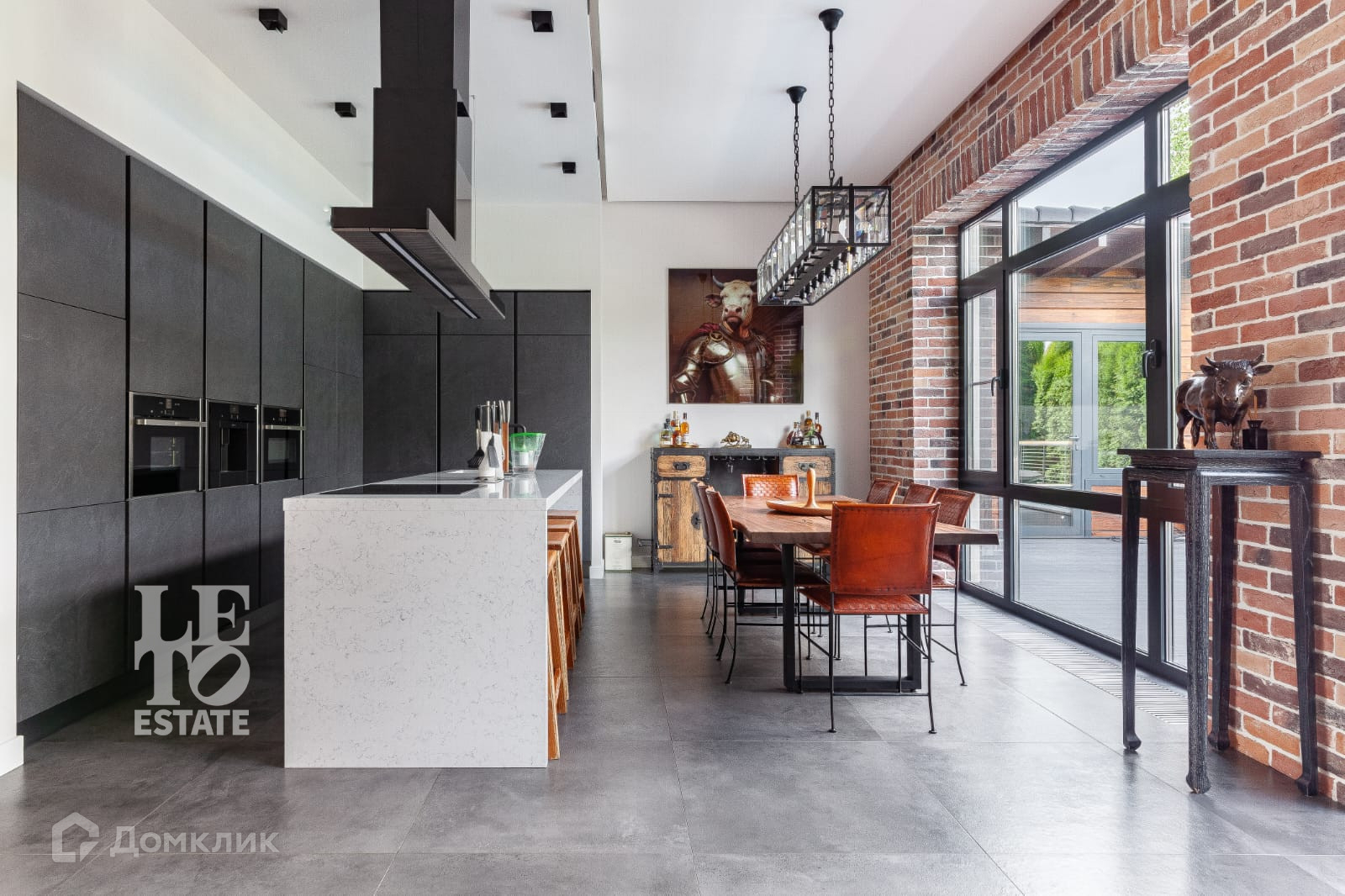 В доме сделан дизайнерский современный ремонт. В интерьере были использованы современные материалы в сочетании разных фактур: керамогранитная плитка, клинкер, лестница из дерева и металла, деревянный паркет. Во всем доме проведен теплый пол. Дом полностью мебелирован (уникальные и дизайнерские предметы интерьера и мебели), оснащен всей необходимой техникой. Планировочные решения позволяют максимально эффективно и функционально использовать все пространство дома, все продумано до мелочей. Из просторной зоны кухни-гостиной можно выйти на веранду, откуда открывается прекрасный вид на участок и бассейн.