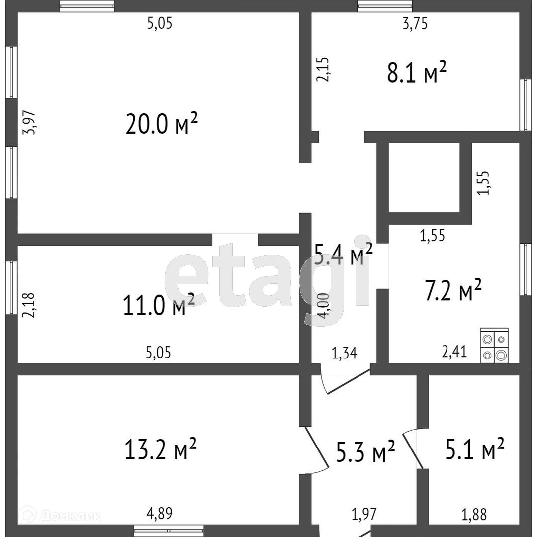 Общая площадь 51.7 м2