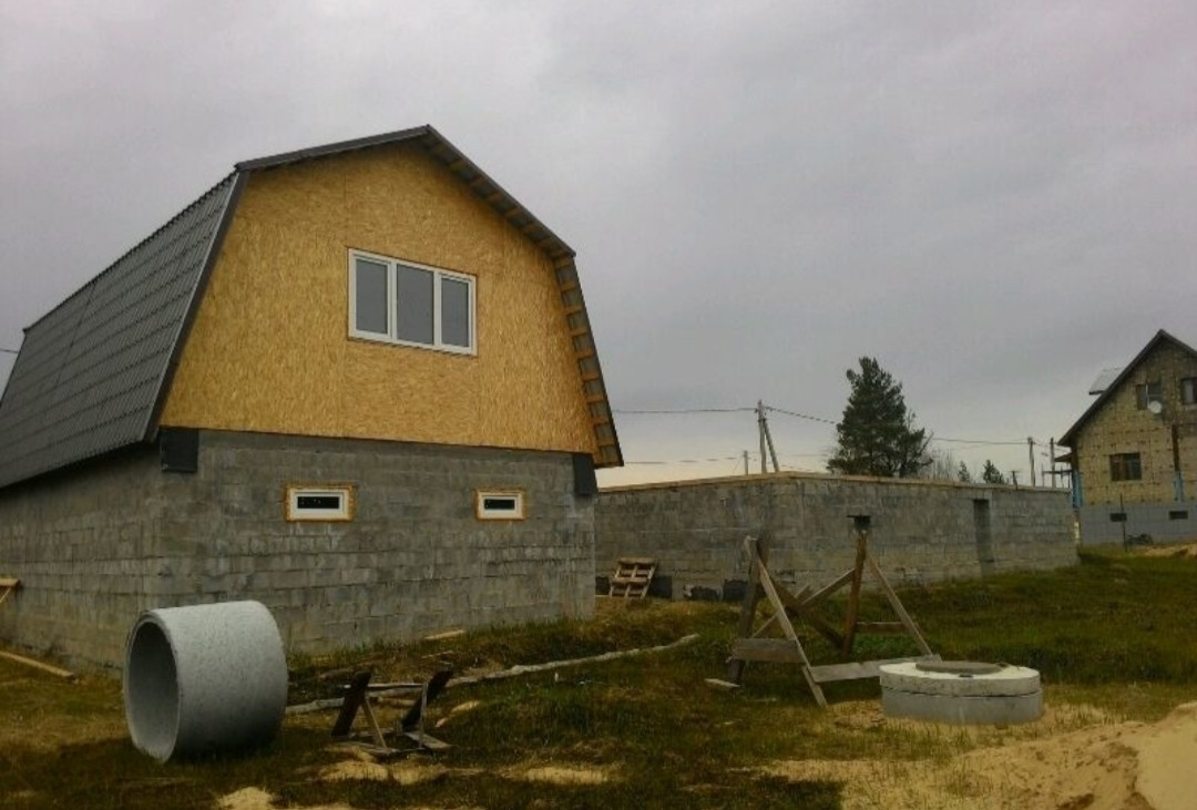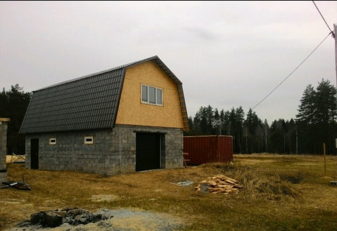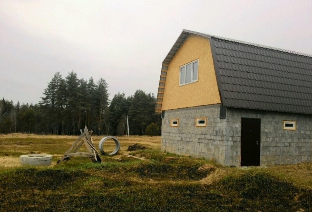 Продам дом 9х12, двух этажный гараж  6х9, также можно из него переделать в дом или хоз. блок, либо летний(зимний) домик,  участок достаточно большой 15 соток. Возможность реализовать любой проект ландшафтного дизайна на свой вкус,  а также сделать планировку дома на своё усмотрение.  Два дома построены  из цементных блоков,  окна пластиковые,  крыша из металлочерепицы.  На участке есть колодец,  свет. Круглогодичный подъезд на автомобиле.  ПМЖ.  Дом в процессе стройки.  Вокруг лес, свежий воздух,  много озёр,  есть пруд недалеко от участка. Тишина и спокойствие.  Все документы в порядке.