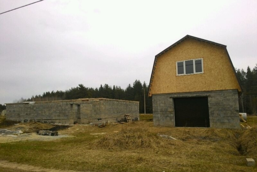Продам дом 9х12, двух этажный гараж  6х9, также можно из него переделать в дом или хоз. блок, либо летний(зимний) домик,  участок достаточно большой 15 соток. Возможность реализовать любой проект ландшафтного дизайна на свой вкус,  а также сделать планировку дома на своё усмотрение.  Два дома построены  из цементных блоков,  окна пластиковые,  крыша из металлочерепицы.  На участке есть колодец,  свет. Круглогодичный подъезд на автомобиле.  ПМЖ.  Дом в процессе стройки.  Вокруг лес, свежий воздух,  много озёр,  есть пруд недалеко от участка. Тишина и спокойствие.  Все документы в порядке.