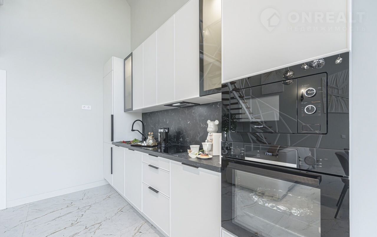 Стильная кухня полностью оборудована, вся техника встроенная: холодильник Nо-Frоst Нyundаi, полноразмерная посудомоечная машина DеLоnghi, индукционная варочная панель Wеissgаuff, духовой шкаф с телескопическими направляющими и каталитической системой самоочистки Wеissgаuff, микроволновая печь Wеissgаuff, вытяжка Моnshеr.