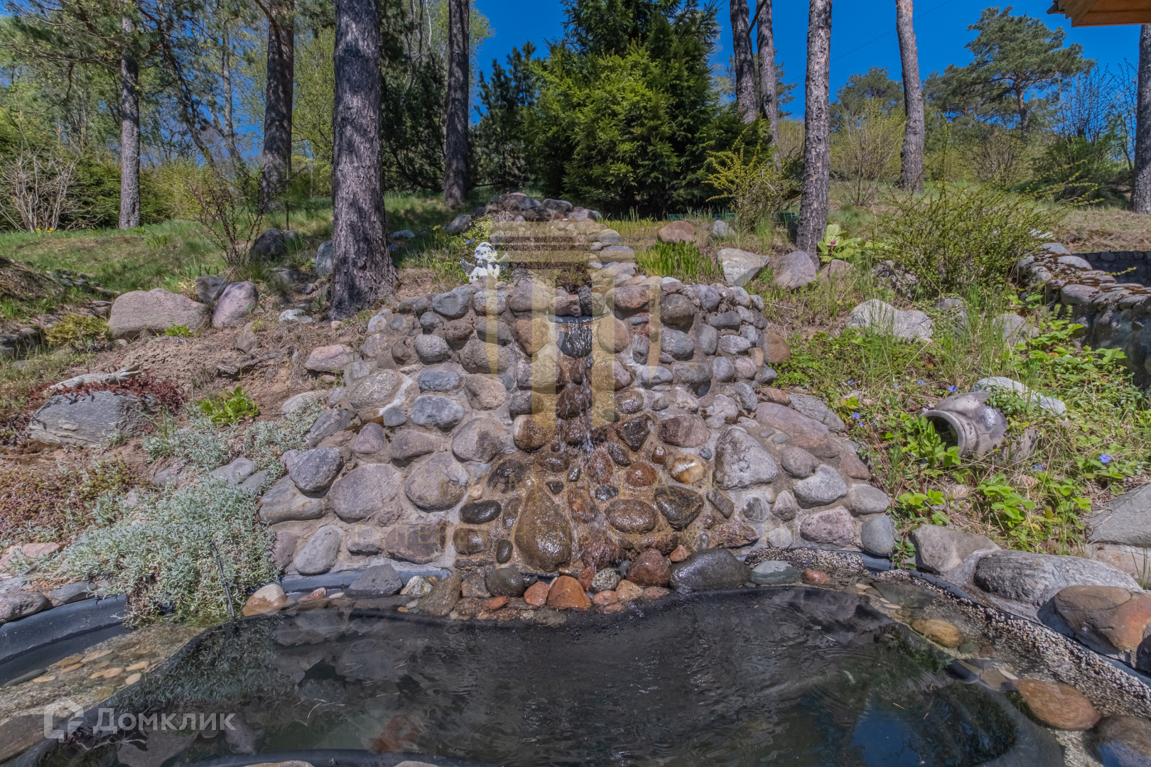 Свой колодец с родниковой водой. Из него насосом подается вода в водопровод на участок.