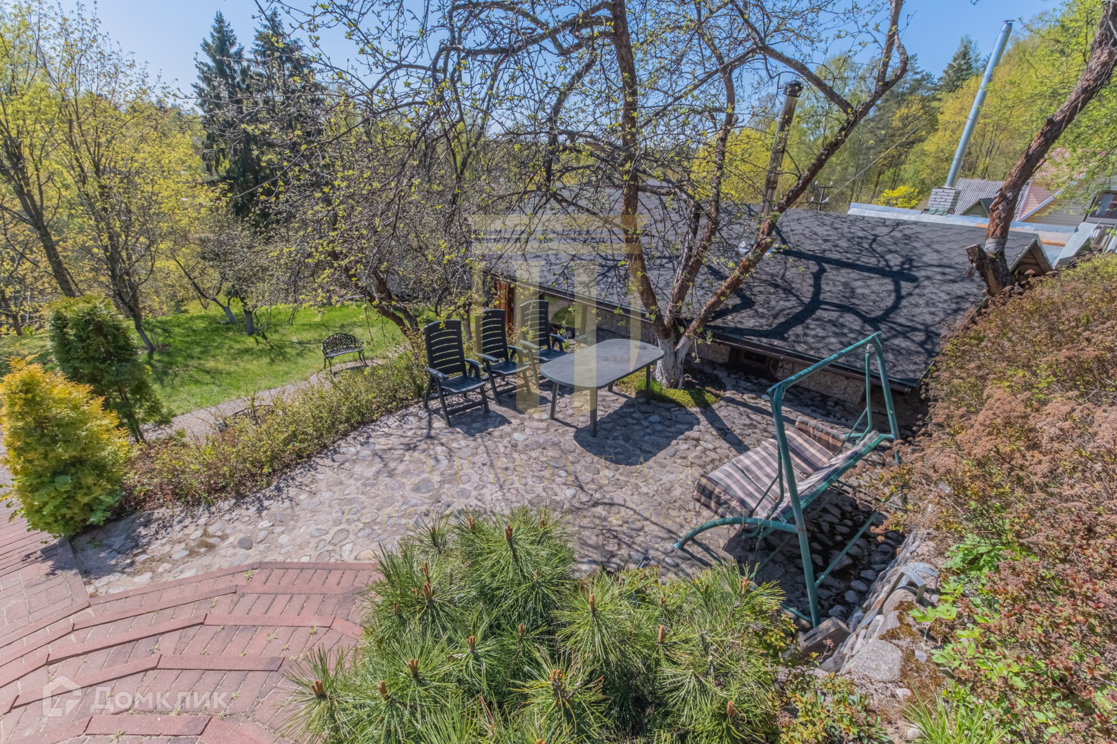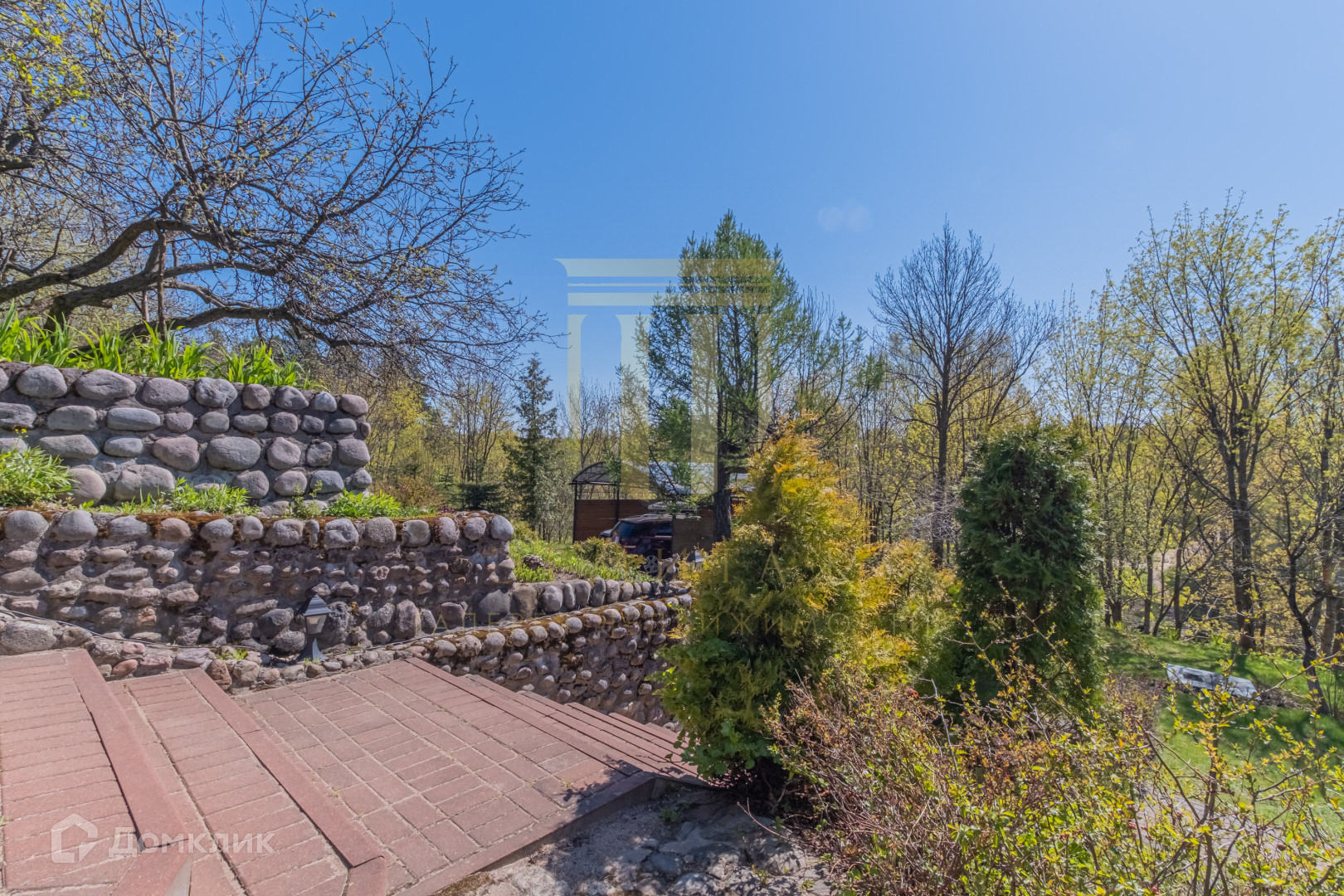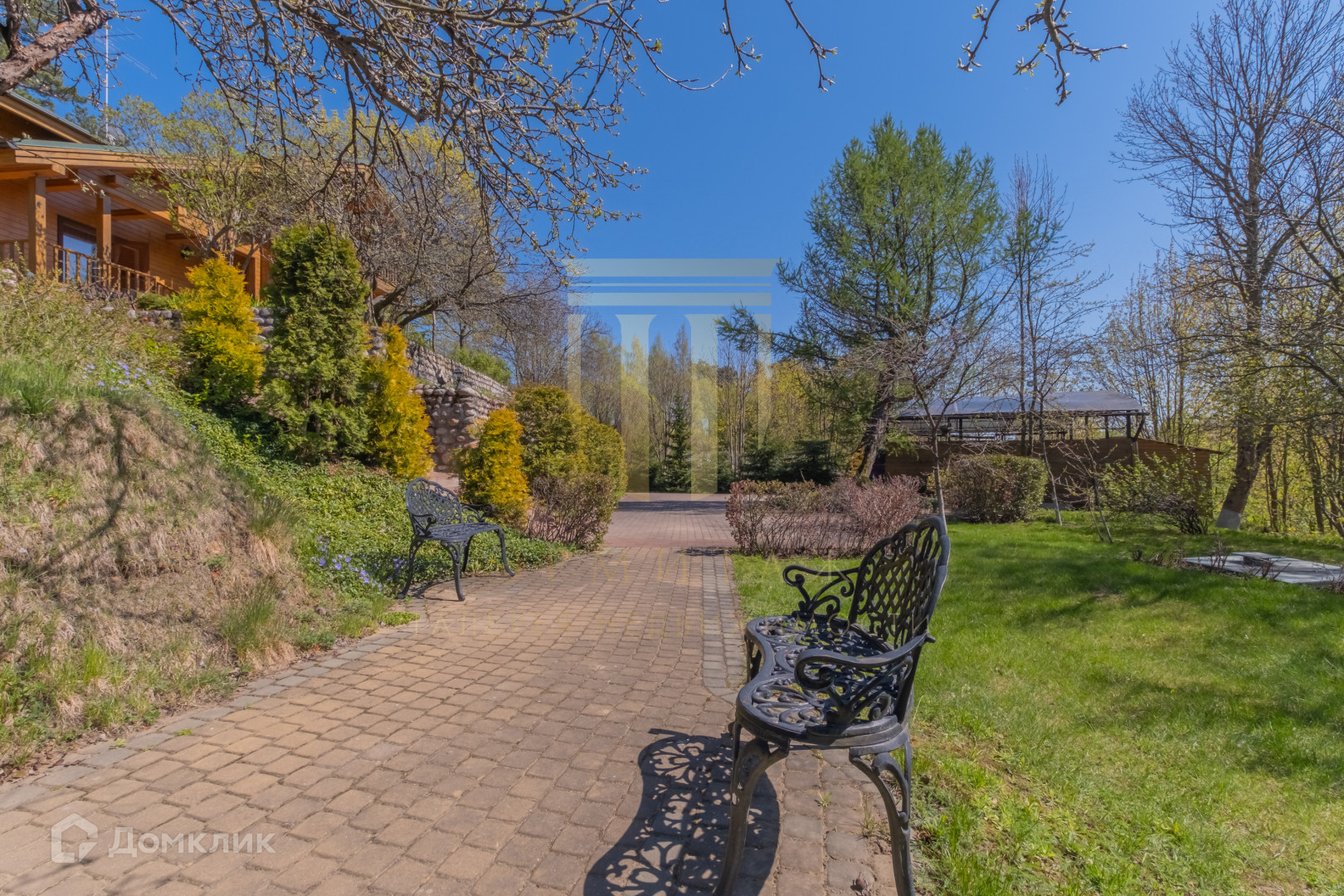 На участке проведен профессиональный ландшафтный дизайн.