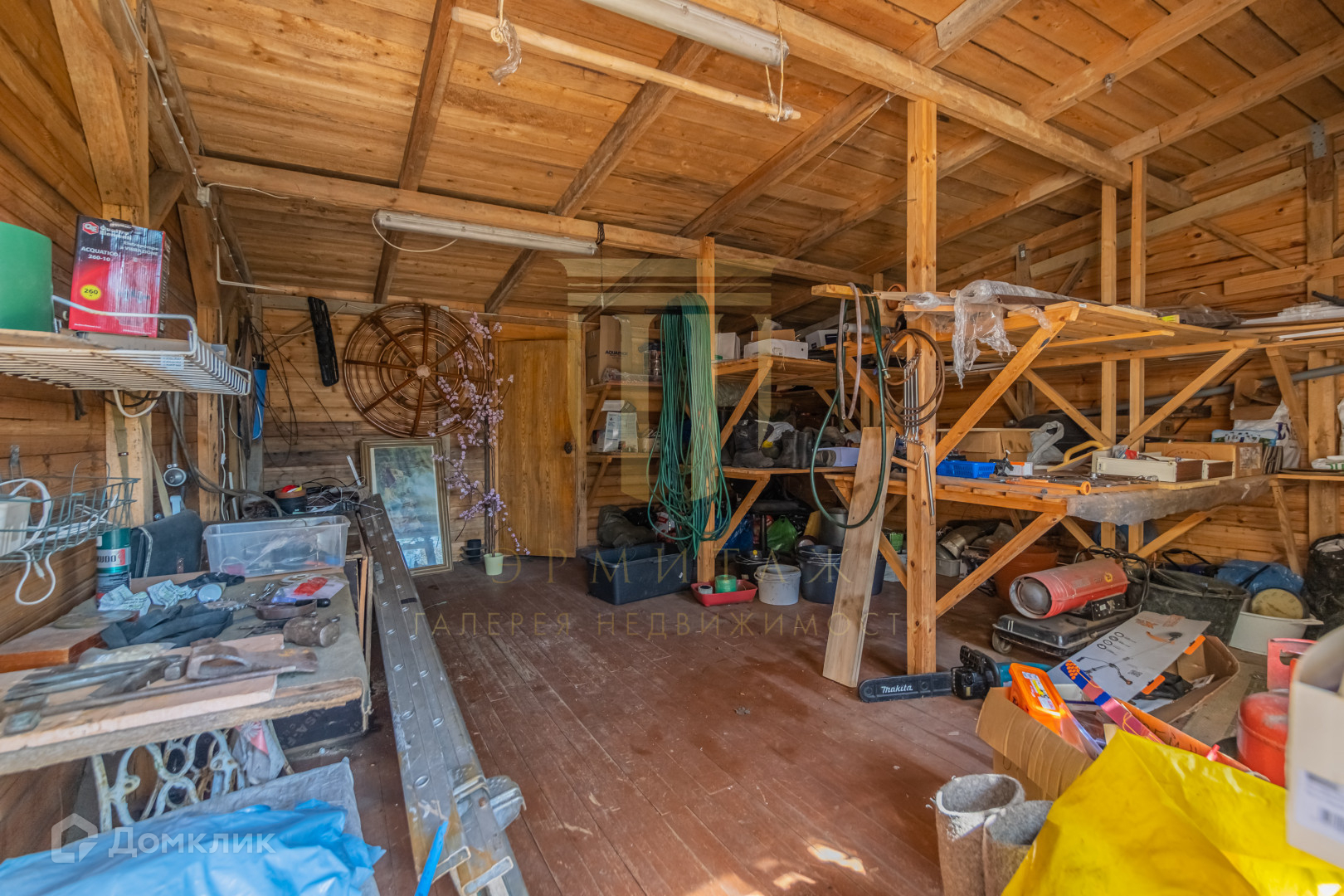 Крытая парковка на 3 машиноместа с зоной хранения для инвентаря и мелкой техники.