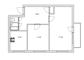 Общая площадь: 56.8 м2