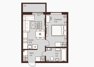 1-ком. квартира на продажу, 33.92 м2, улица Энергетиков, 3