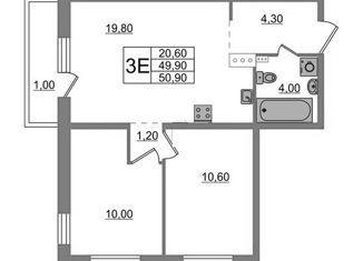Общая площадь: 50.9 м2