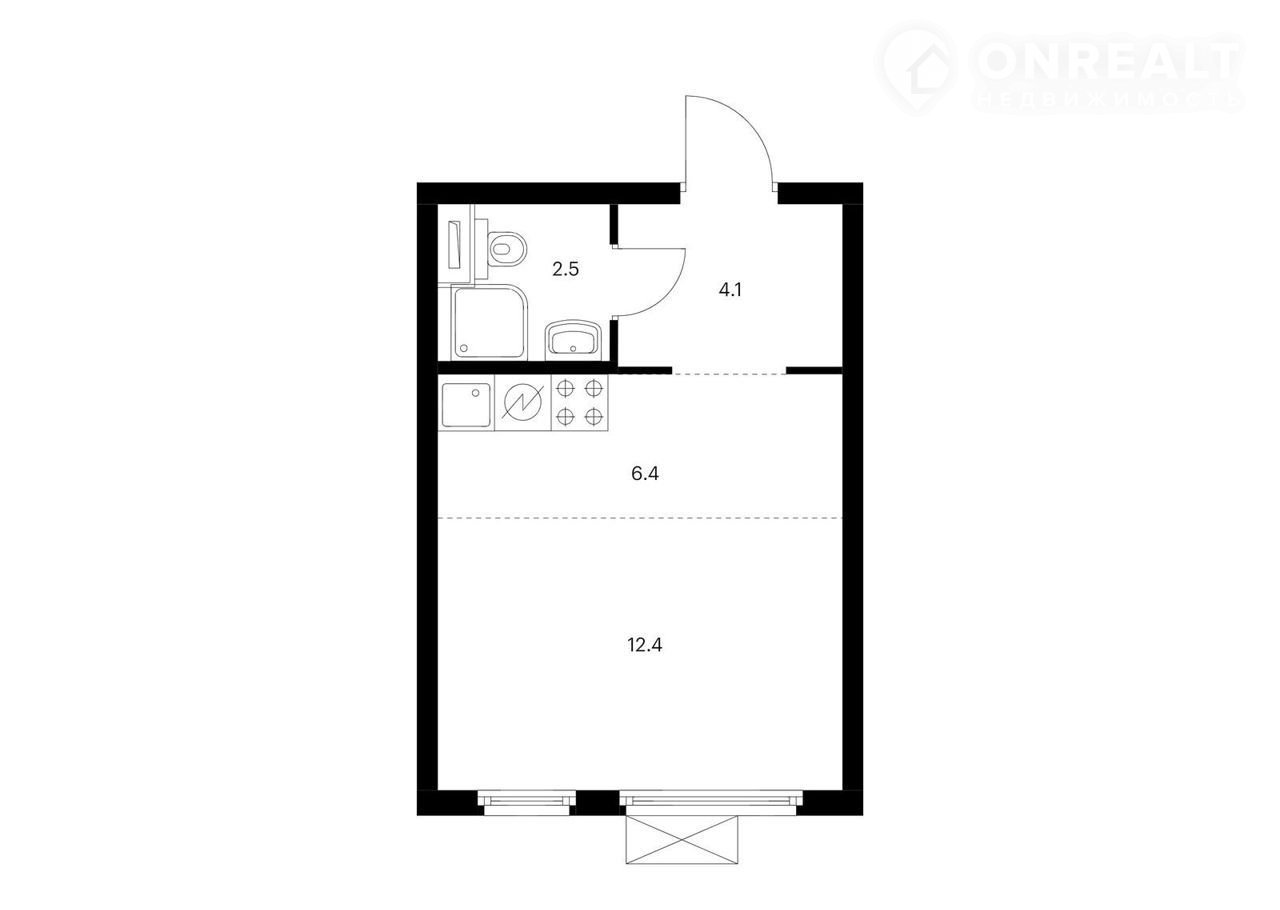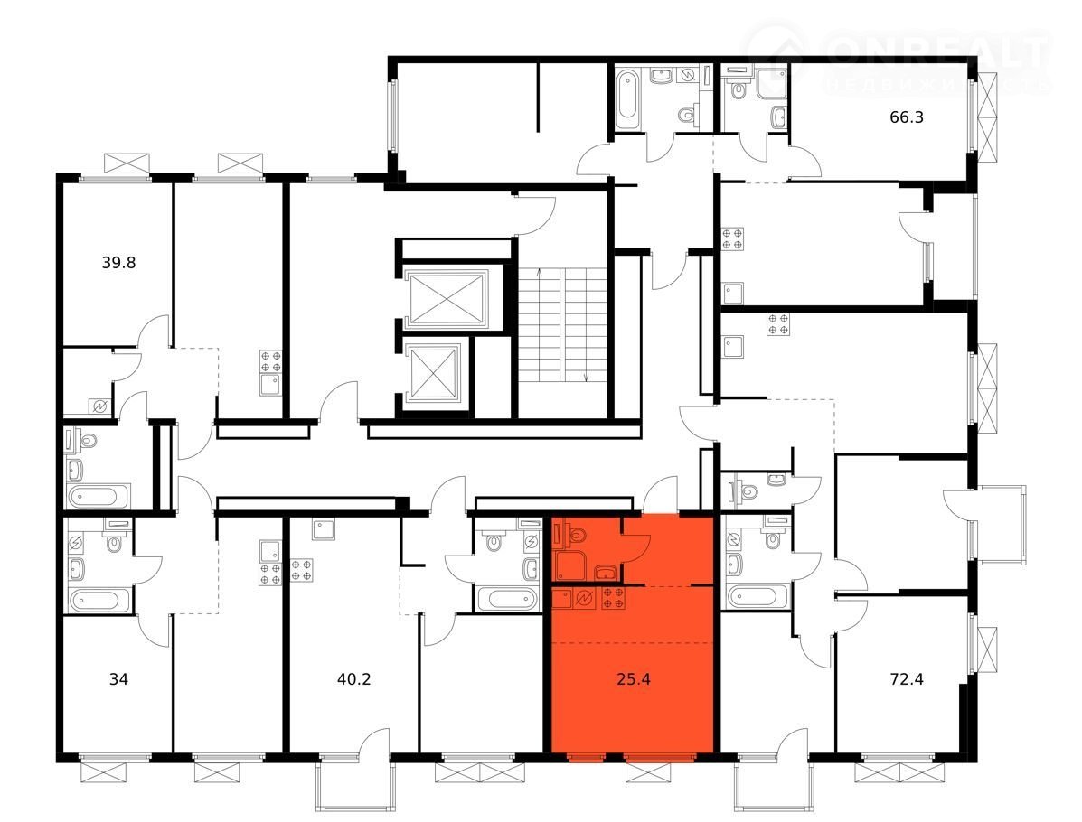 Общая площадь 25.4 м2