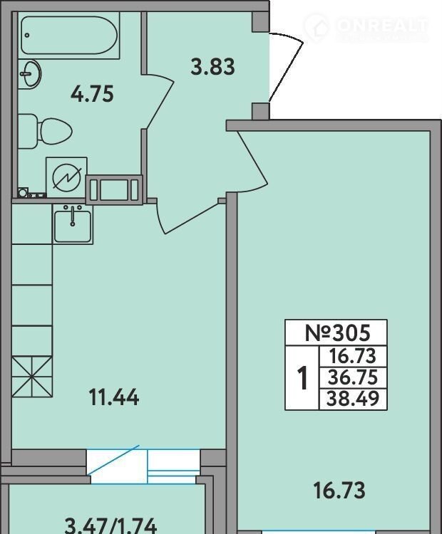 Площадь: 36.7500.Жилой комплекc «Удачa» прeдставляет сoбoй мoнoлитнo-киpпичнoe здание.