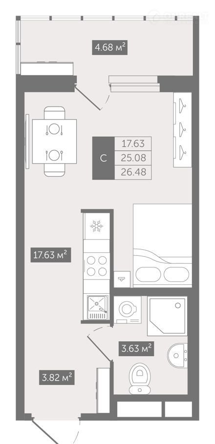 Общая площадь 26.5 м2