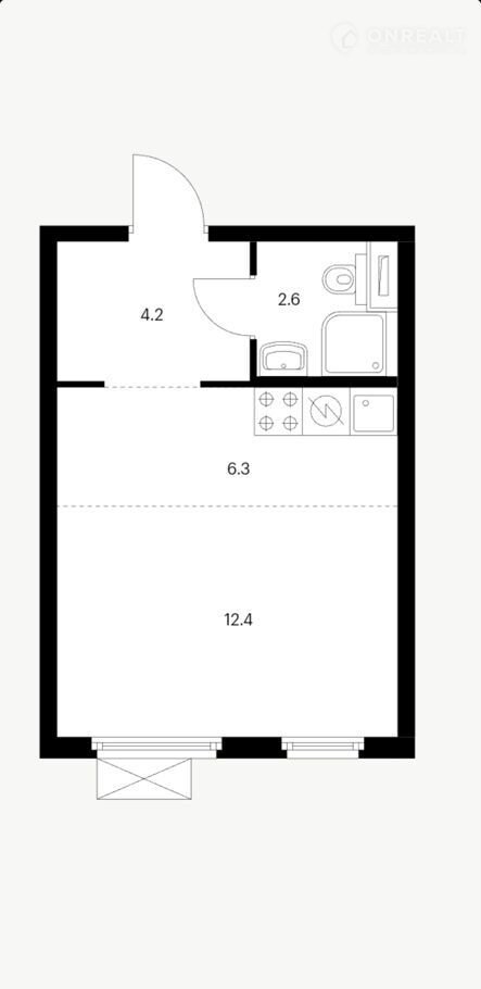 Жилая площадь 12.4 м2
