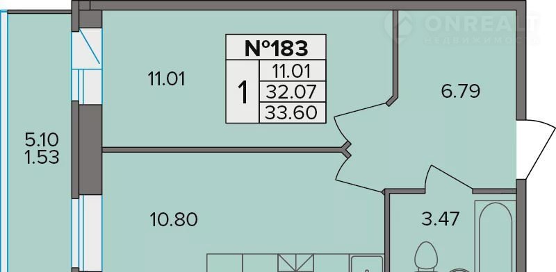 Общая площадь 33.6 м2