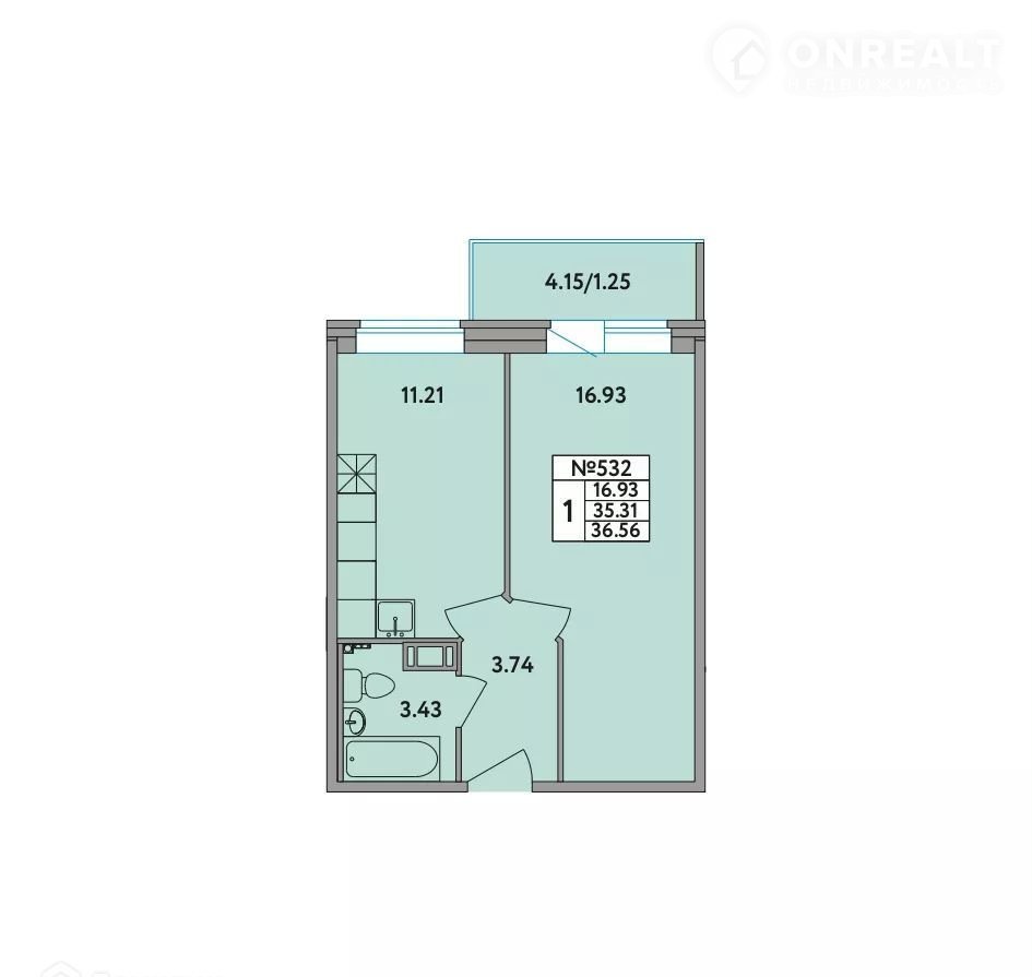 Общая площадь 35.3 м2