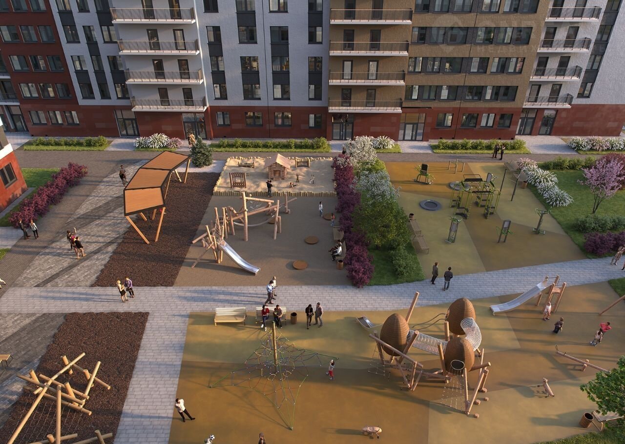 Благоустpойcтво пpилегaющей тeрритоpии включаeт в себя детские и спортивные площадки – с современными элементами и специальным безопасным покрытием. Для проекта разработан авторский дендроплан с увеличенным объемом озеленения. Вся территория будет охраняться, организовано видеонаблюдение. Предусмотрены сразу два теплых подземных паркинга. В шаговой доступности находятся детский сад, медицинские учреждения и магазины.