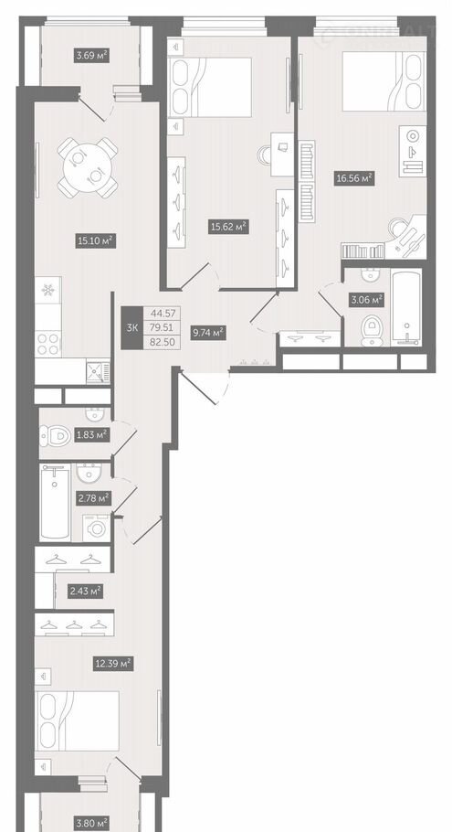 Общая площадь 82.5 м2