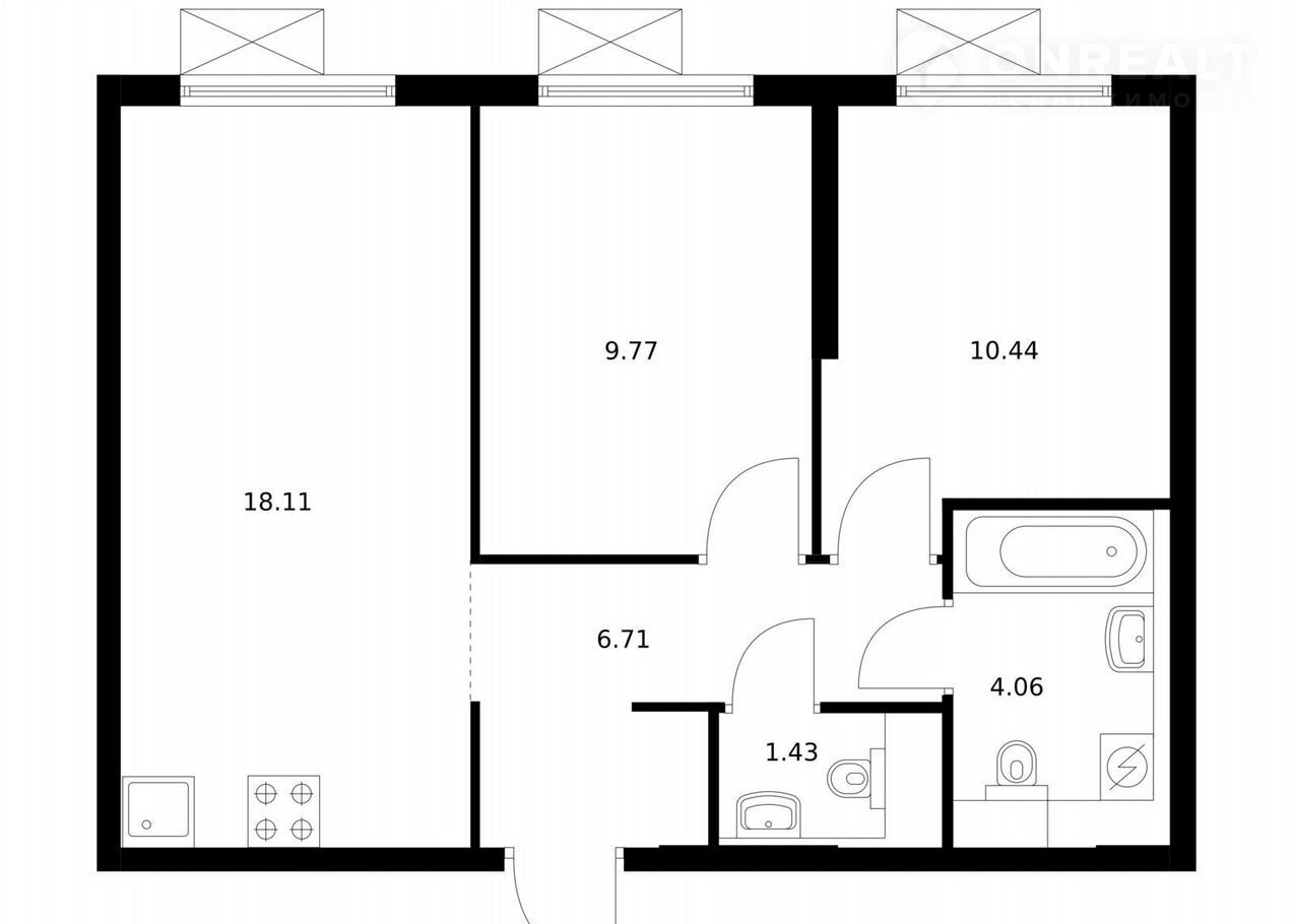 Общая площадь 50.5 м2