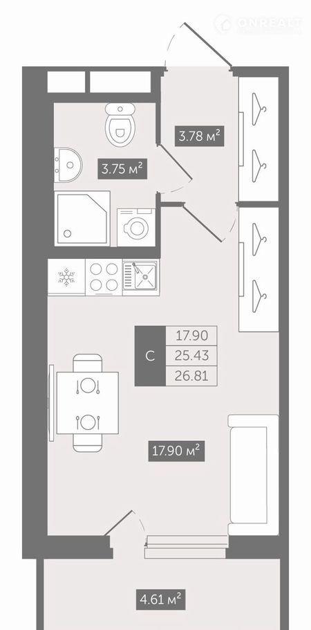 Общая площадь 26.8 м2