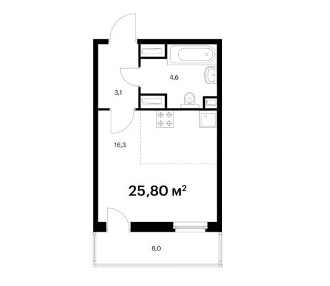 Общая площадь 25.8 м2