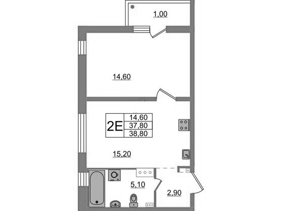 Балкон, лоджия 1 балкон