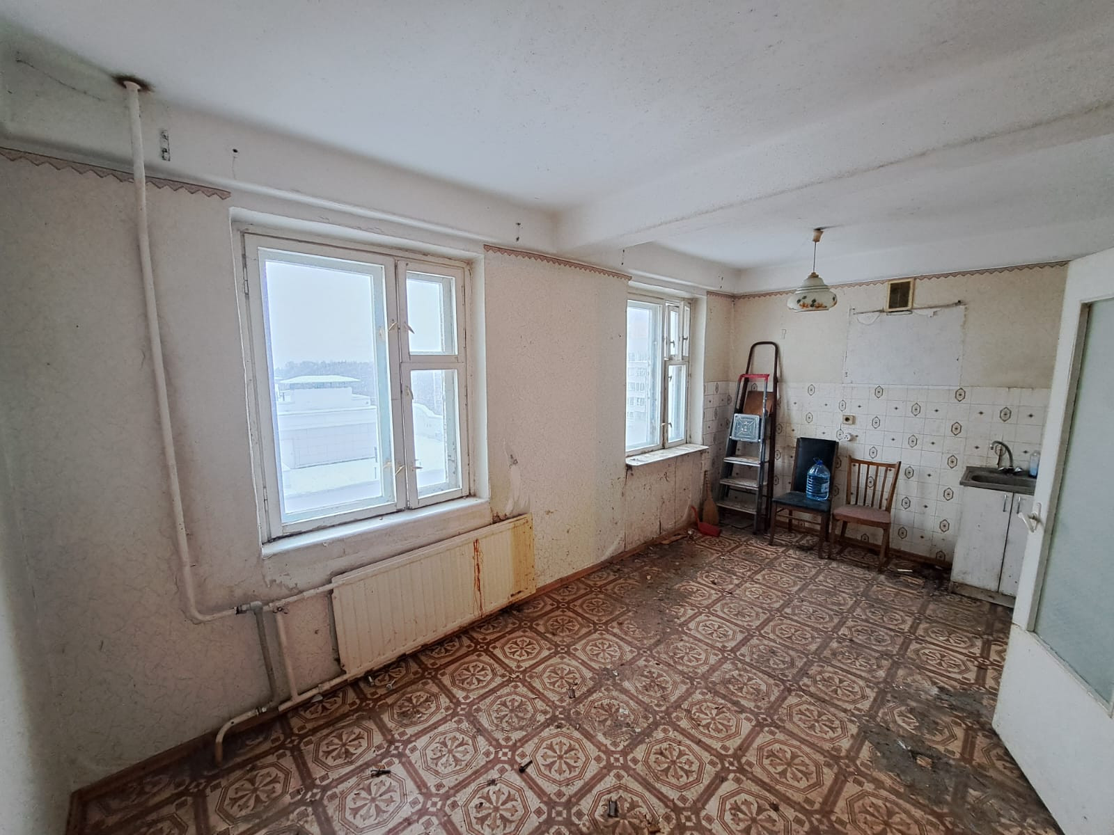 В квартире нет ремонта, что позволяет обустроить её под любой вкус. Большая кухня 14 кв.м. с двумя окнами смотрит во двор на солнечную сторону, в комнате большая застеклённая лоджия. Есть место под гардеробную и кладовую.