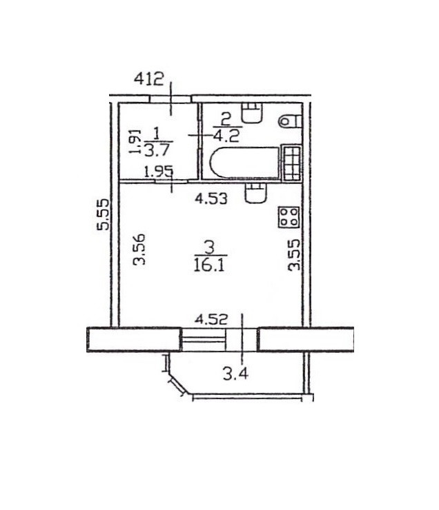 Жилая площадь 16.1 м2