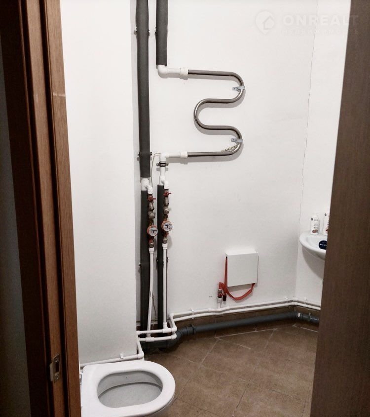 Один совмещенный санузел с установленной ванной, унитазом и раковиной. В санузле предусмотрено место для стиральной машины. В квартире установлены счетчики электричества, воды и газа. Дверь металлическая. Площадка имеет всего 4 квартиры, отделенные дверью от лифтового холла.