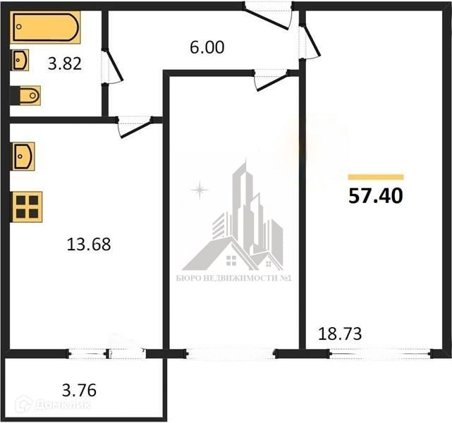 Общая площадь 57.4 м2