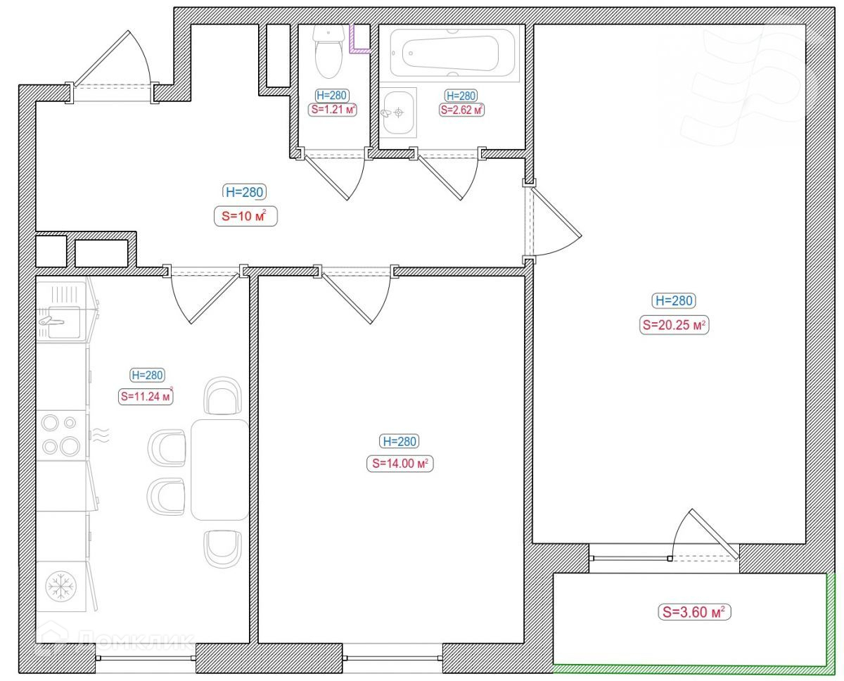 Высота потолков 2.8 м