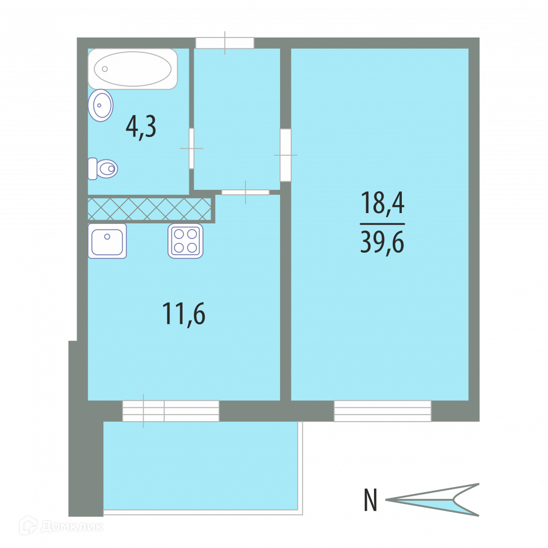 Общая площадь 39.6 м2