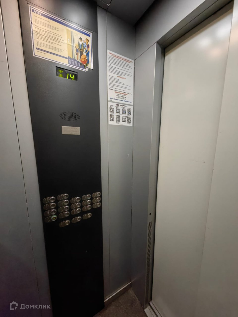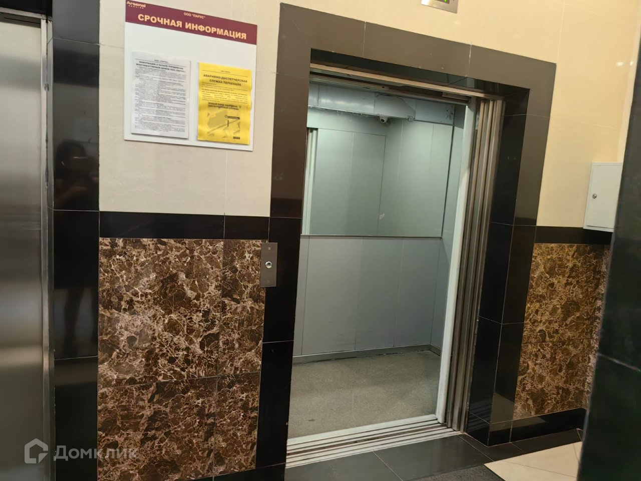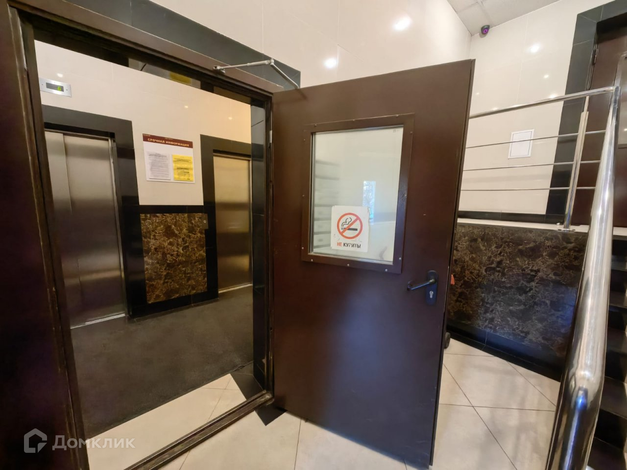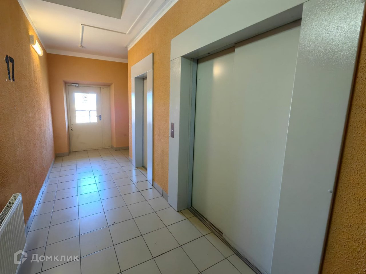 На этаже всего 7 квартир с общим просторным коридором. За закрывающейся на ключ дверью - лифты ; грузовой и пассажирский. Через  общий балкон можно выйти на лестничную клетку.