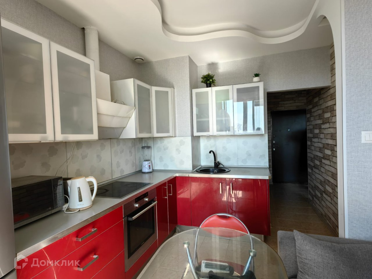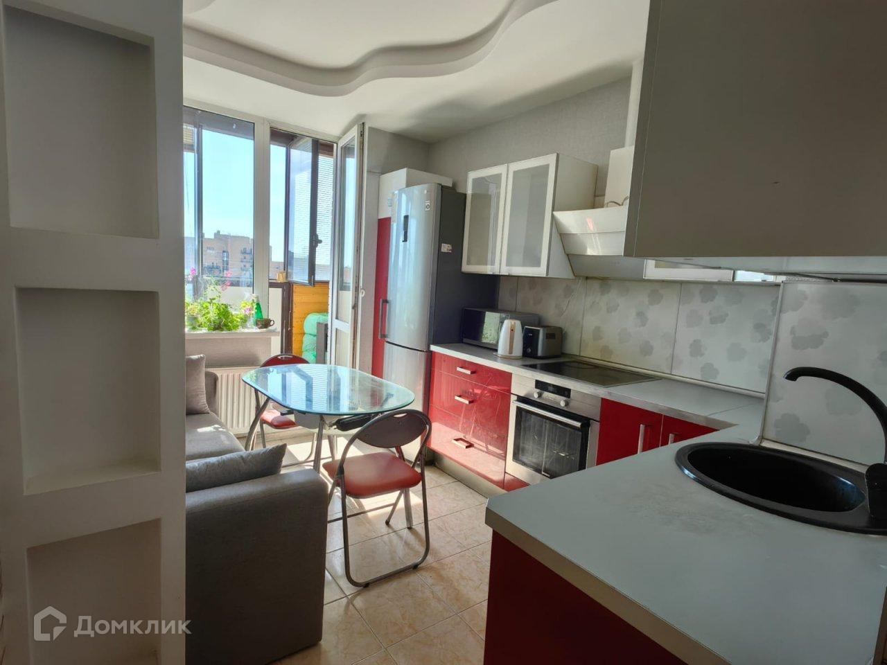- на кухне оборудован встроенный кухонный гарнитур со всей необходимой техникой;
