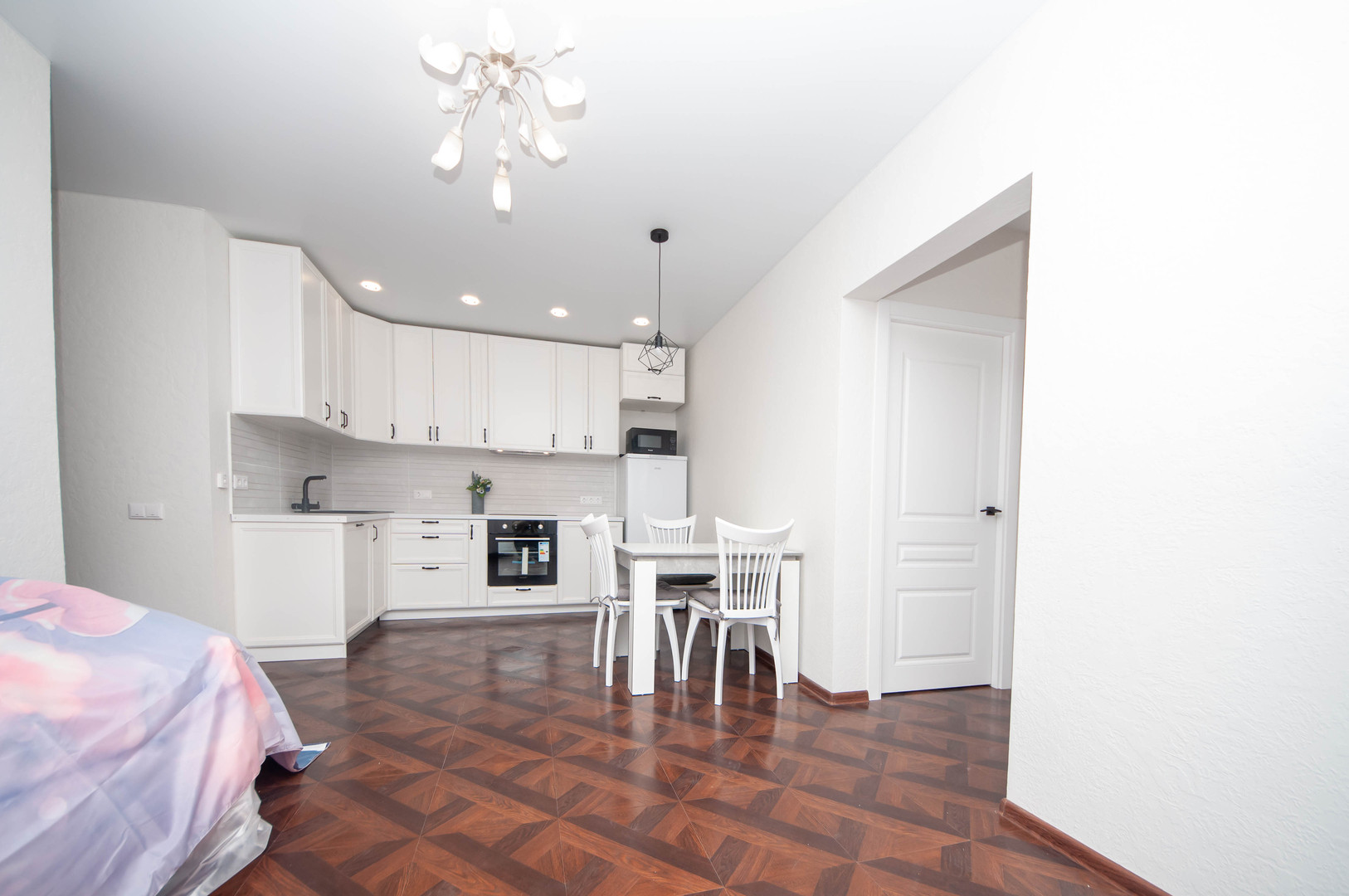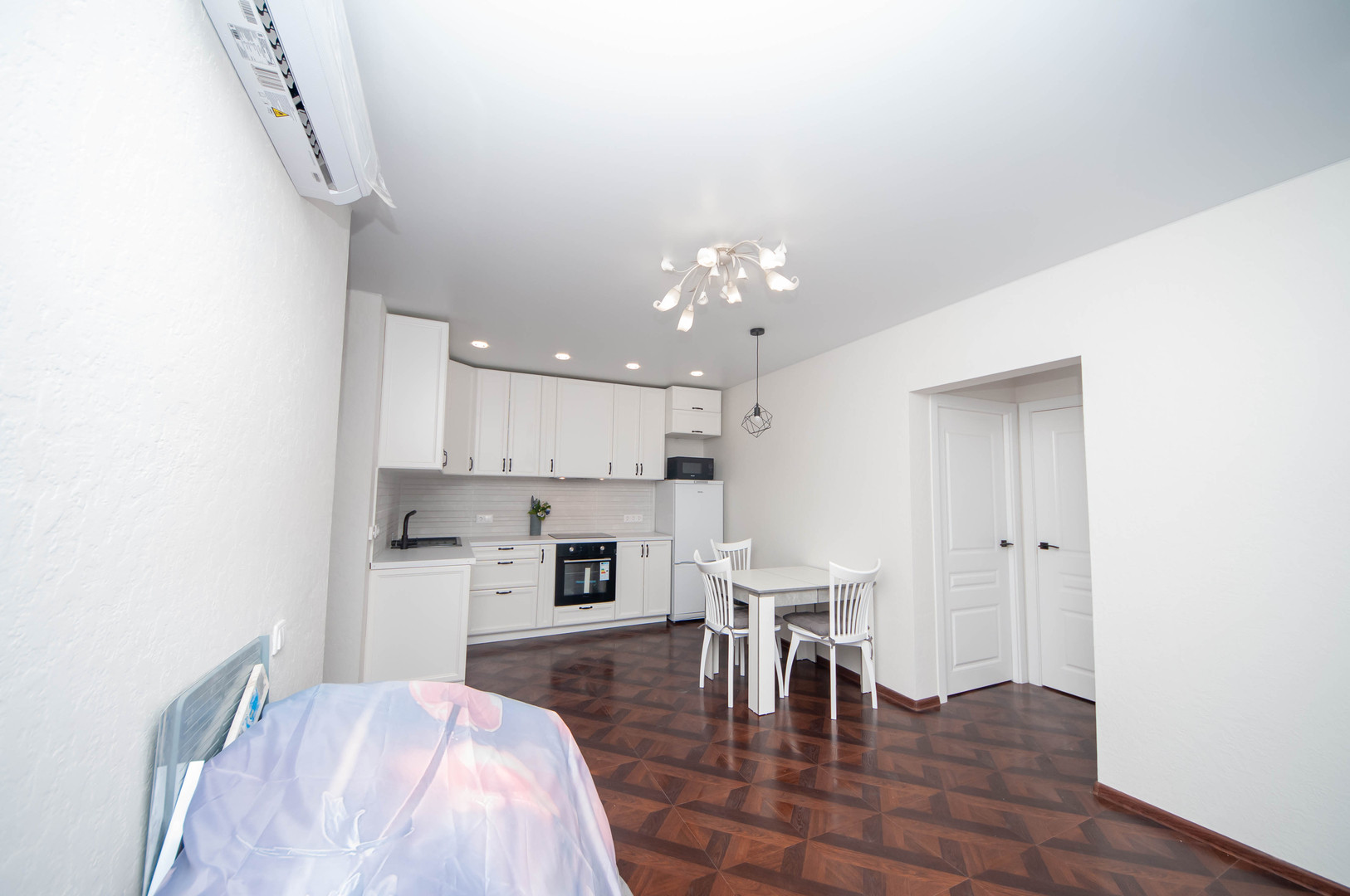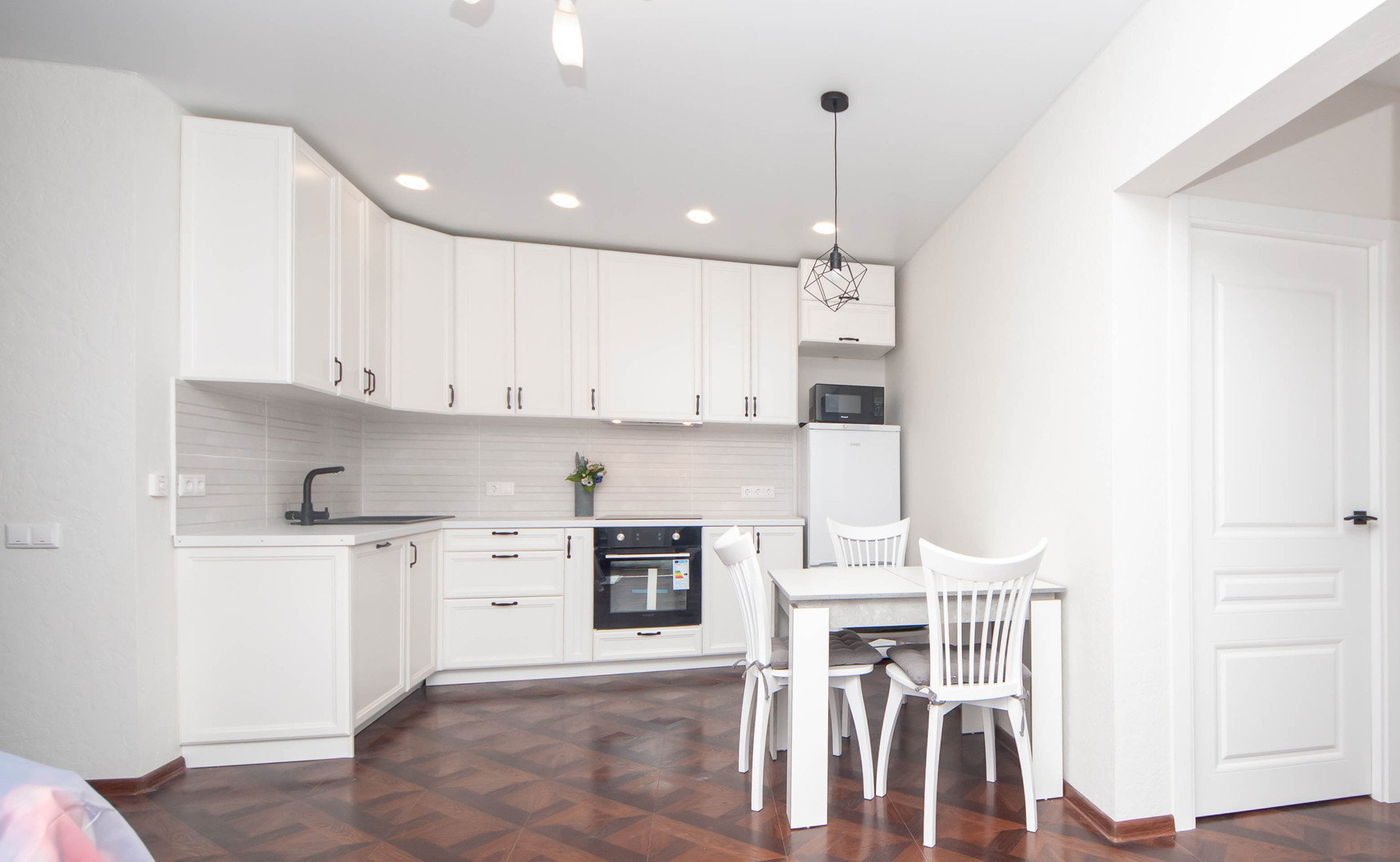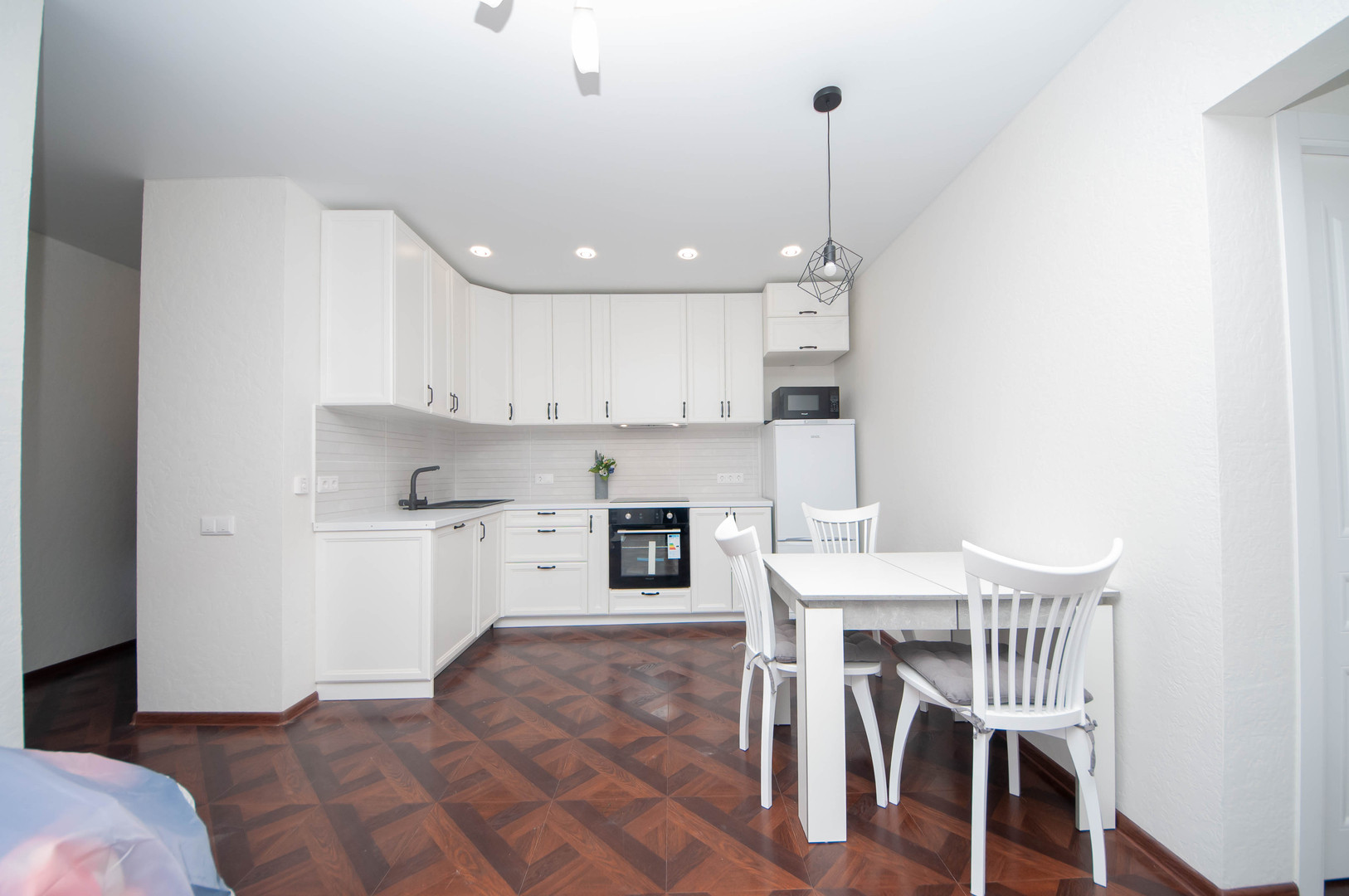 - очень качественная встроенная кухня со всей необходимой техникой (холодильник, посудомойка, микроволновка, электрическая плита, духовой шкаф и т.д.);
