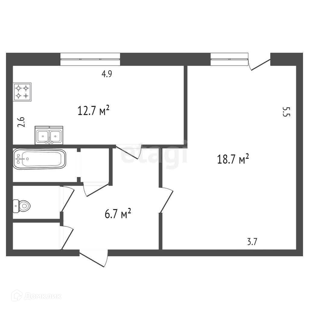 Площадь кухни 12.7 м2