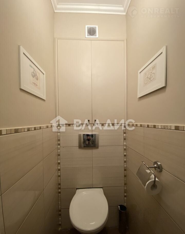 Общая площадь квартиры составляет 56,9 квадратных метров, из которых 31,5 приходится на жилые комнаты (17,3 и 14,2 кв. м соответственно). Кухня занимает 10 кв. м. Высота потолков — 2,77 метра. Есть лоджия. Санузел раздельный.