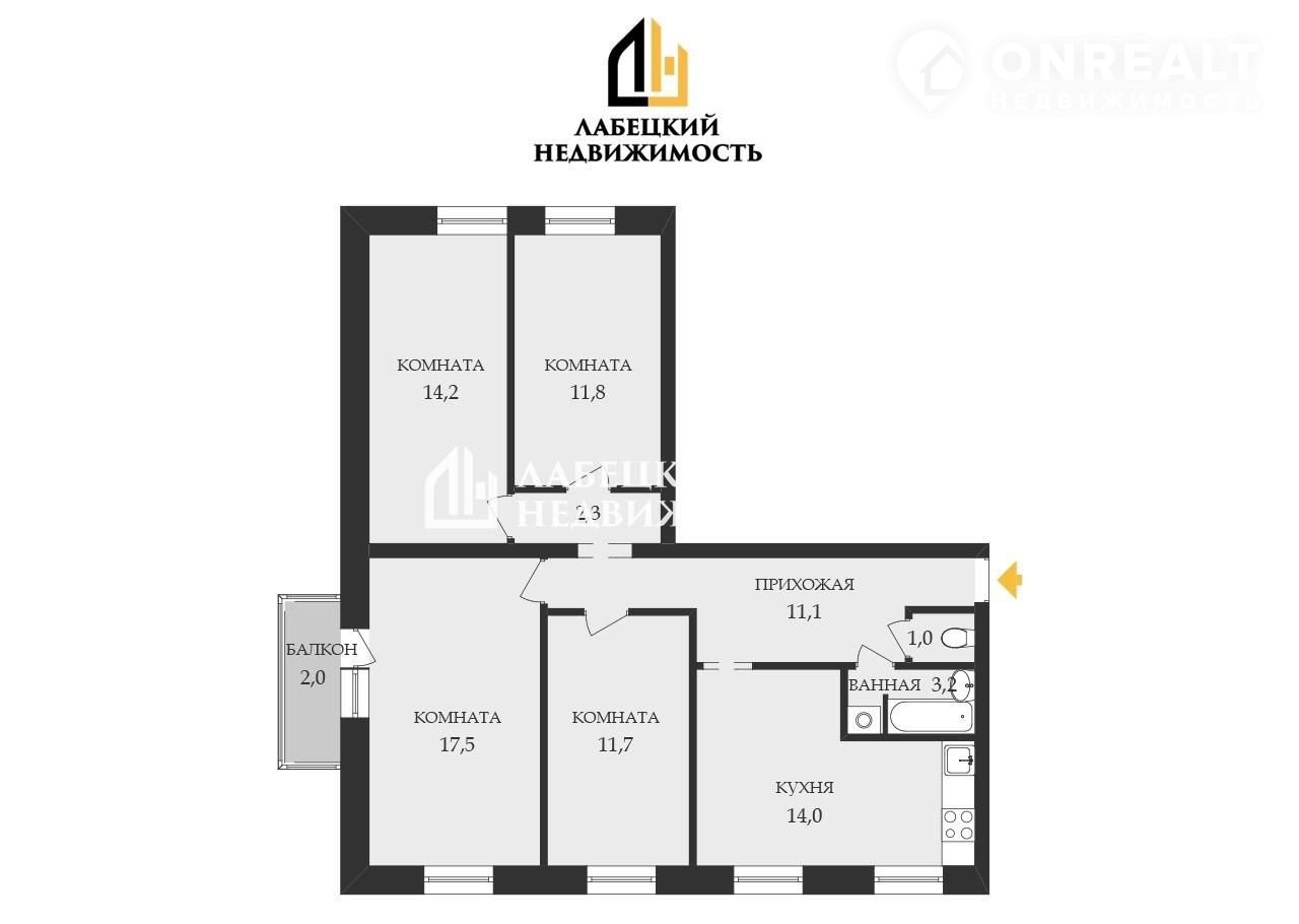 - ТРИ СПАЛЬНИ (11,7 м²-14,2 м²-11,8 м²);