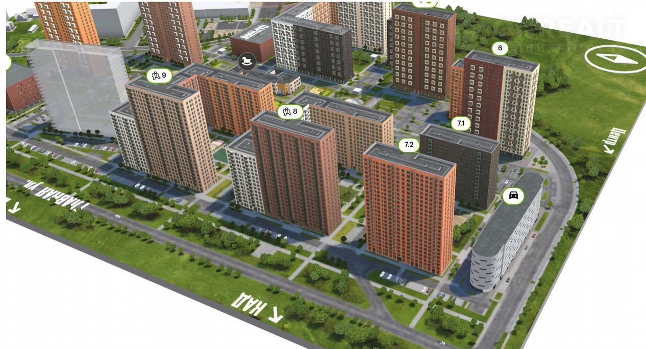 ✔ Развитая инфраструктура: 8 жилых домов, паркинги, школа, детсад