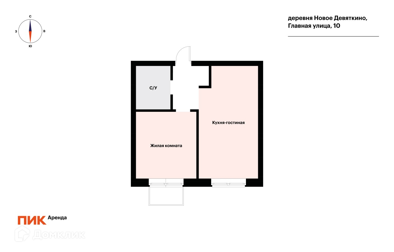 1-комнатная квартира, 36 м2, в аренду на длительный срок в деревне Новое Девяткино, Главная улица, 10