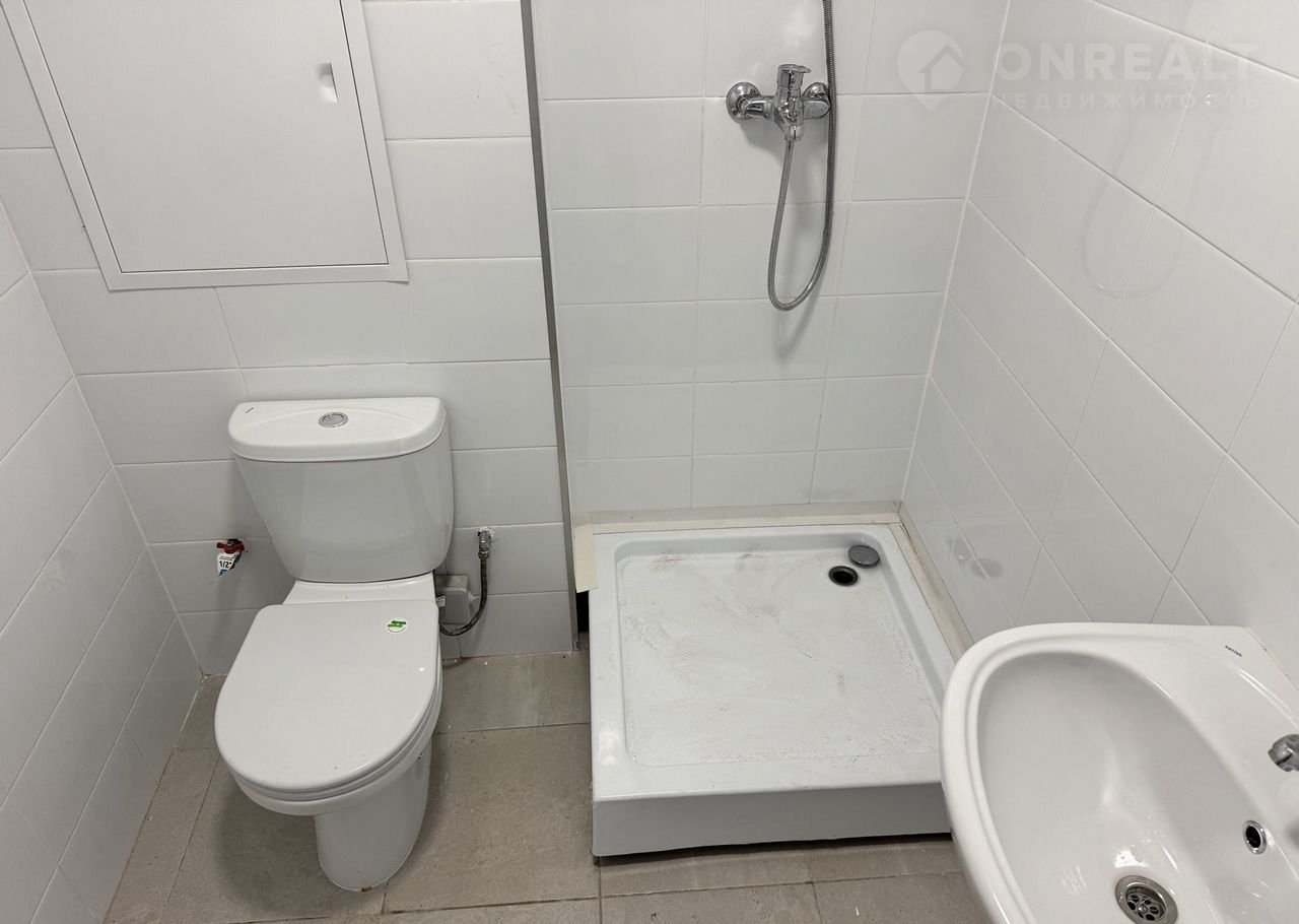 Санузел совмещённый оборудован душевым поддоном, установлен унитаз и раковина.