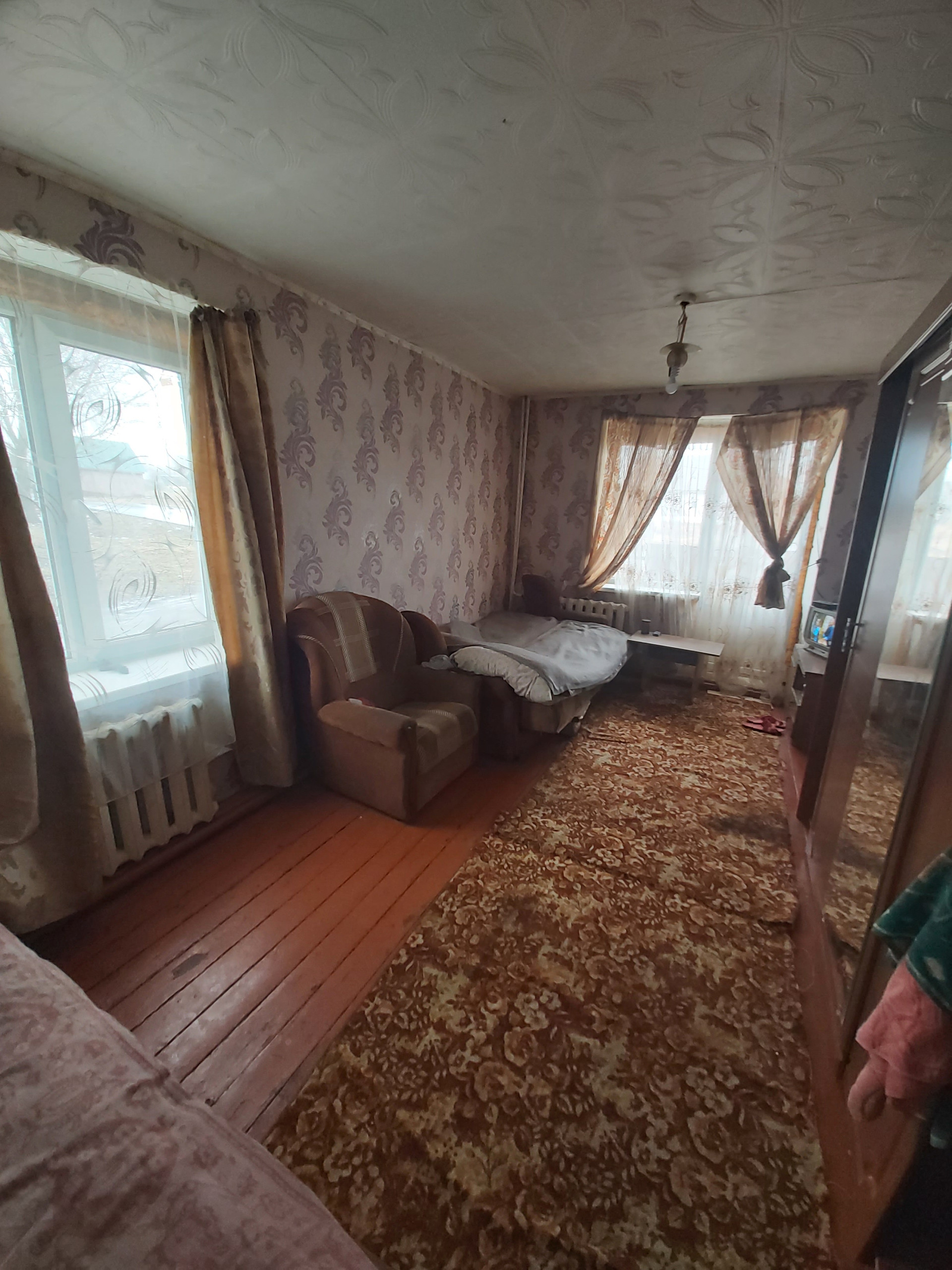 Квартира расположена в 10  км от Жирятино, и 30 км от областного центра (Брянска).В деревне есть школа ,детский садик ,магазины, кафе,клуб. Квартира расположена в центре, комнаты изолированные, установлены стеклопакеты , включая кухню. В квартире есть большая просторная лоджия (не остеклена), с выходом из комнаты и кухни, гардеробная 2,5 кв.м.  Подходит под любой вид оплаты, более 5-ти лет в собственности.