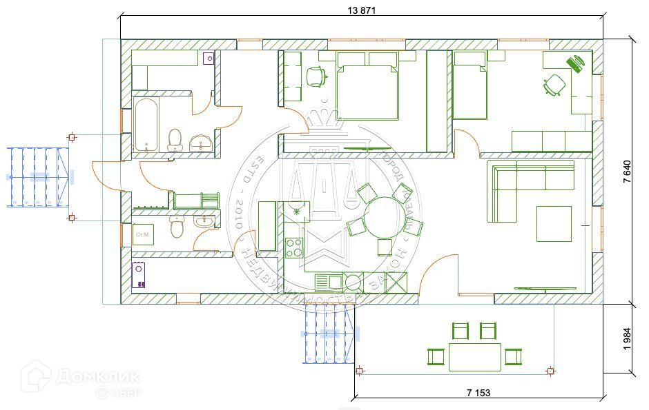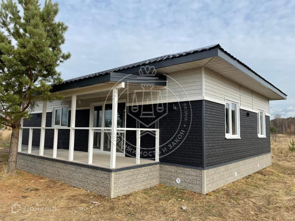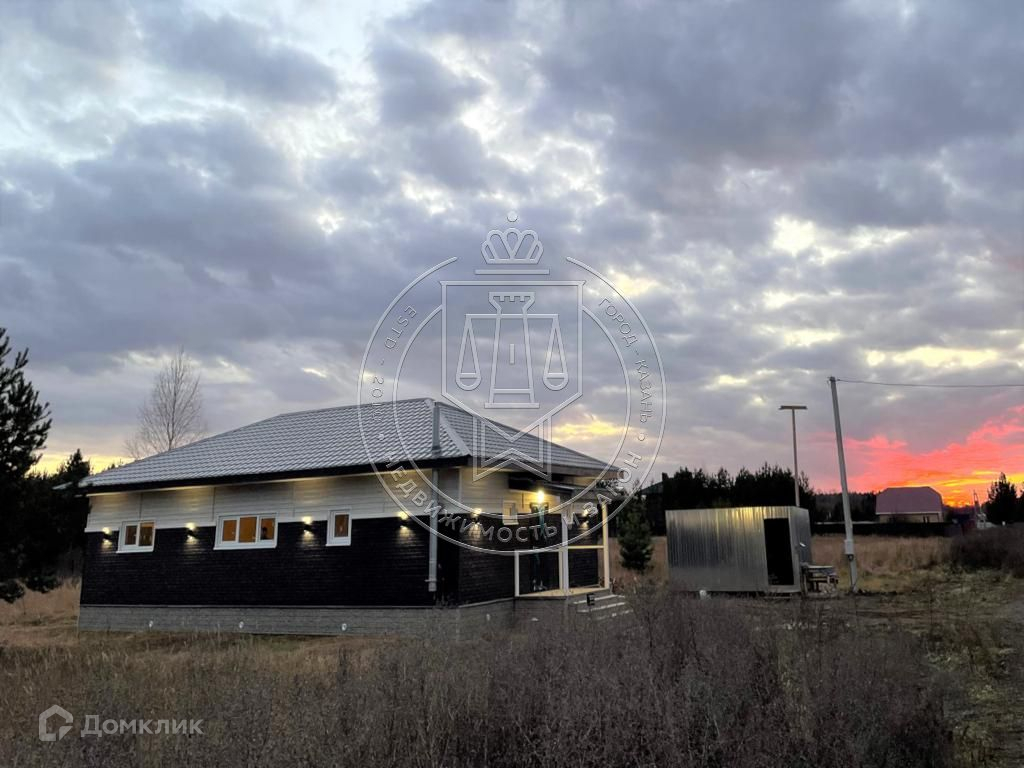 Новый каркасный дом в коттеджном поселке Эрмитаж ГарденПродается новый каркасный одноэтажный дом площадью 115 кв.м с участком 6,1 сот. в коттеджном клубе Эрмитаж Гарден, расположенном в 26 км от центра Казани. Посёлок находится в окружении живописного леса в 200 м от реки Казанка, недалеко от ж/д станции Высокая гора. Территория поселка обеспечена всеми коммуникациями и охраной.Дом построен по современной каркасной теплосберегающей технологии с готовностью под чистовую отделку. Планировка дома включает большую кухню-гостиную (34,5 кв.м), две спальни (13,8 и 11,8 кв.м.), основной и гостевой санузлы (4 и 2,5 кв.м), техническое помещение (4 кв.м), а также большую прихожую с тамбуром и коридор. Особенностью проекта является наличие сауны (2,8 кв.м), совмещенной с основным санузлом, просторной террасы (14,5 кв.м) и крыльца (6,5 кв.м) с широкими лестницами.Центральный водопровод, газ, электричество: все коммуникации заведены в дом. Установлены двухконтурный газовый котел Bosсh мощностью 24 кВт и септик. Сауна полностью оборудована «под ключ».Дополнительно возможна чистовая отделка в соответствии с предпочтениями покупателя.
