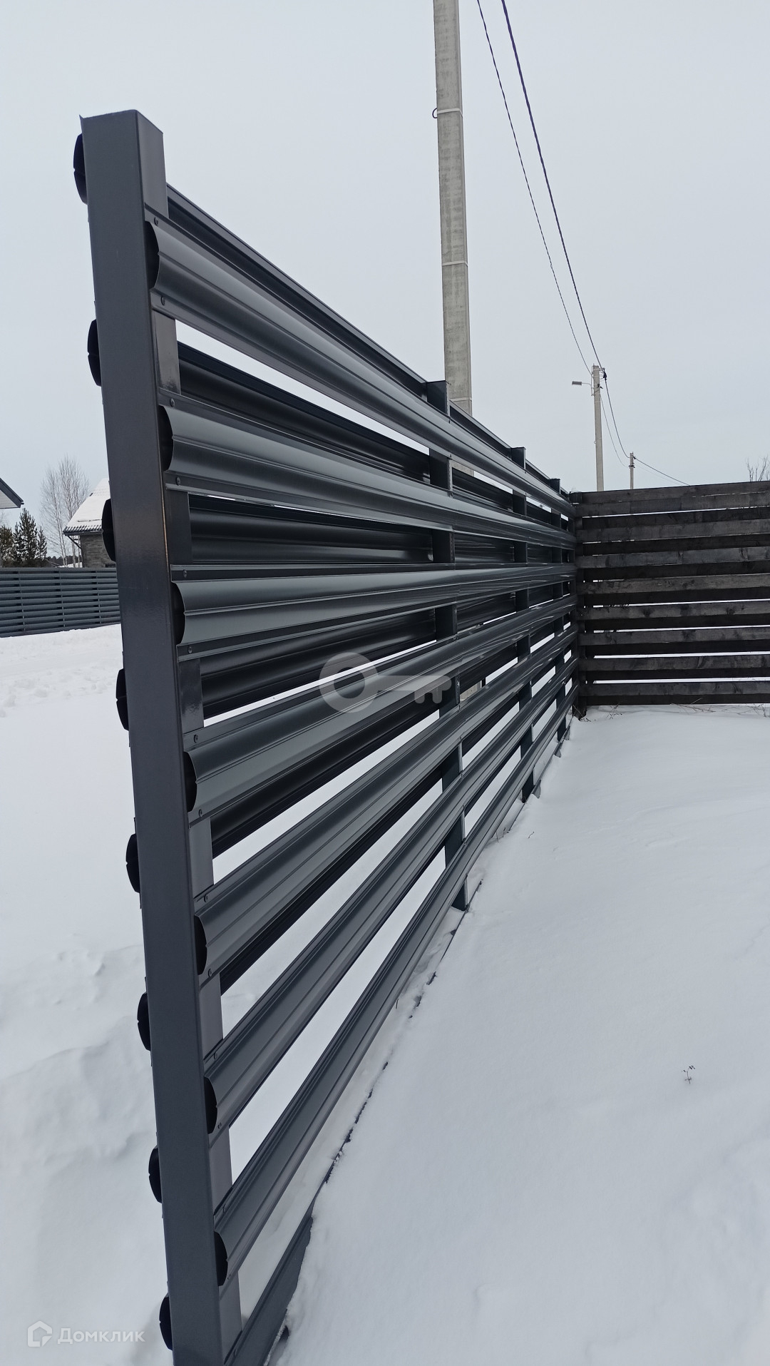 участок по периметру огорожен забором из металлического штакетника,